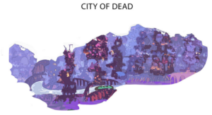 Following the entrance to the tomb is the Flower Bridge which, using projection mapping and forced perspective, will illuminate the boat and surrounding scenes pushing the boat over the bridge and over to the City of Dead. The water would glow orange, and flowers would be falling from the walls using state of the art mapping to make it look like you were encompassed by the orange petals.