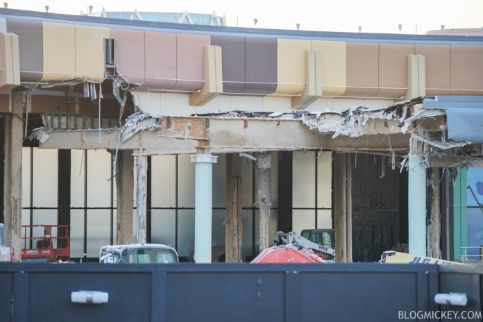 Again, we’re sad to see and report this. The demolition of the former Fountain View Starbucks location is well underway at Epcot.