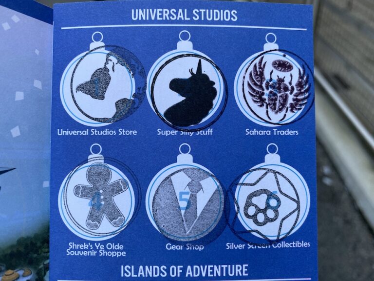 You can pick up a free Holiday Tree Hunt map at either of the main stores in either Universal Studios Florida or Universal’s Islands of Adventure. However, don’t be confused by the ornaments displayed next to the maps. Those aren’t the free prizes for completing the map.