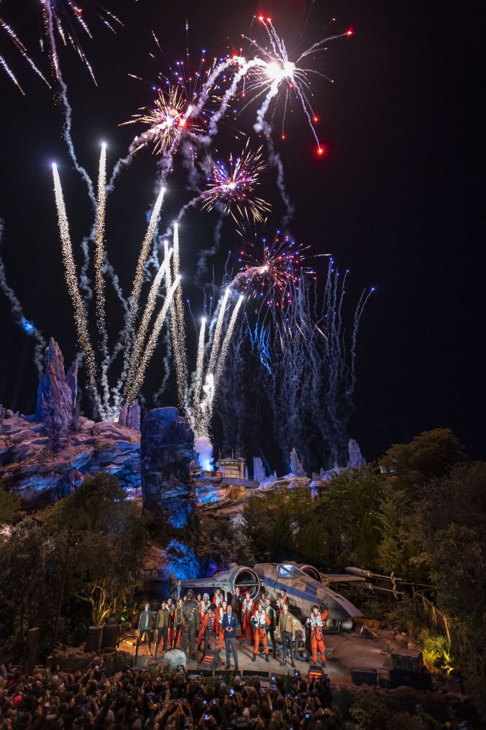 Following weeks of intense preparations, 2 drones disguised as X-Wings were seen during the opening part of the dedication ceremony. Fireworks completed the dedication ceremony, following comments from Bob Chapek, Disney Parks, Experiences and Products Chairman.