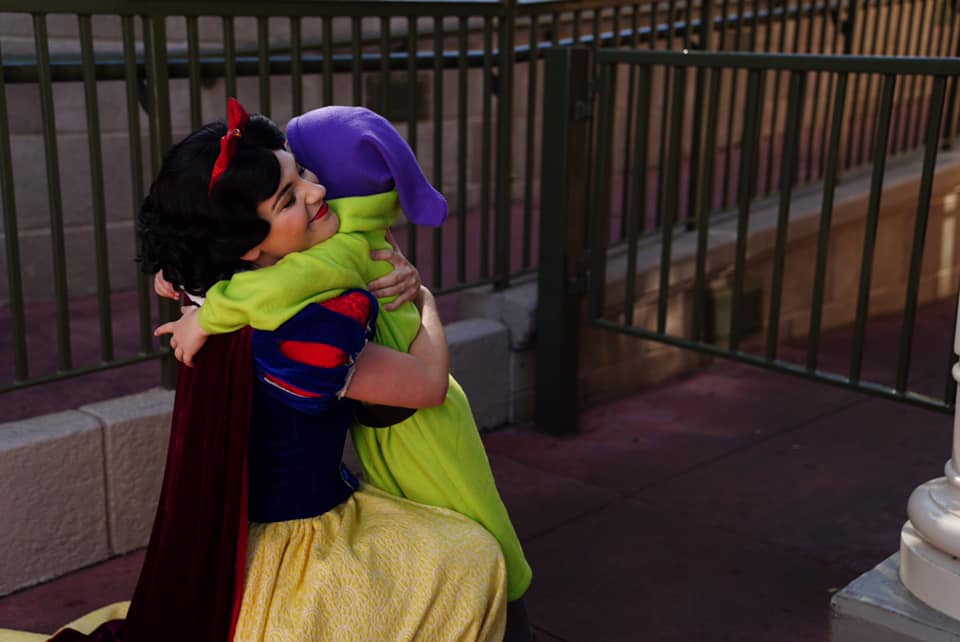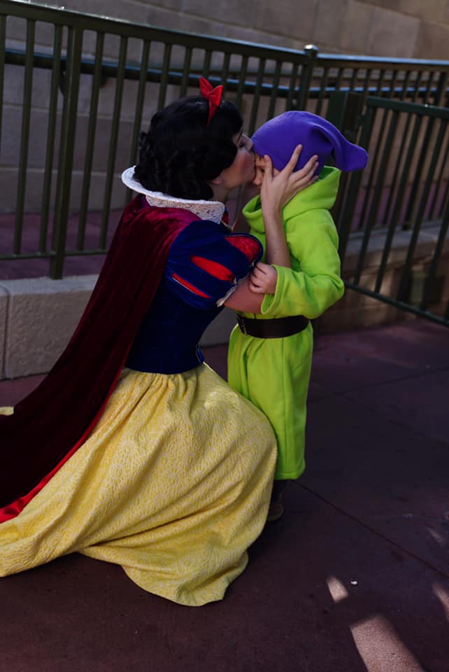 Jackson’s mum captured the moments when her son, dressed as Dopey, hugged and laughed with his favourite Disney Princess Snow White. See below: