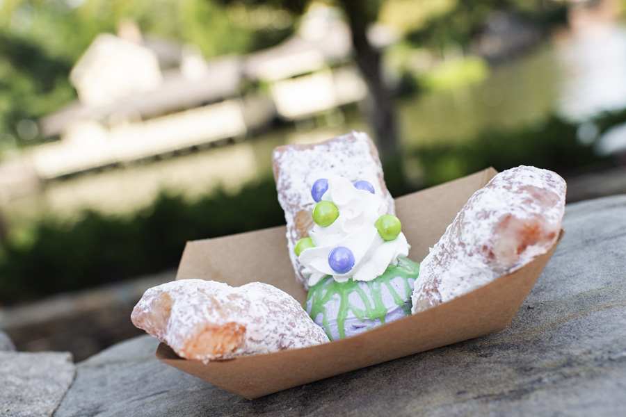 Just Take Three (Available at Sleepy Hollow): Three beignets dusted with powdered sugar and served with vanilla ice cream topped with whipped cream and chocolate ganache.
