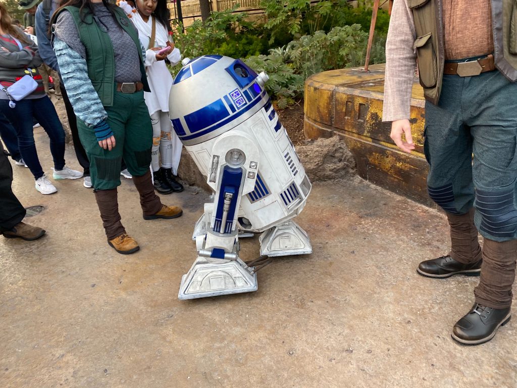 R2-D2 was seen roaming near the entrance of Millennium Falcon Smugglers Run at Disneyland and around the land at Hollywood Studios.