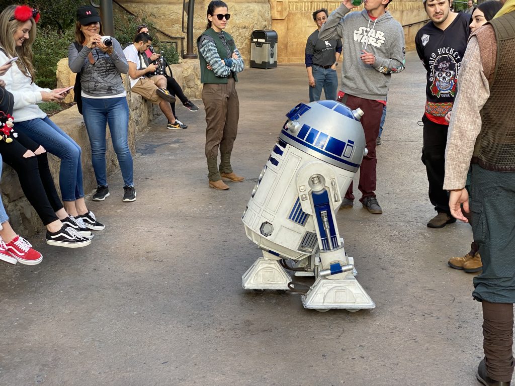 Ecstatic to see R2-D2 finally roaming free in Galaxy’s Edge, Hopefully this is the start of seeing more characters come to the land! Next can we please get the Hondo Ohnaka that we saw at the media event opening at WDWs GE, or Harkos the Bounty Hunter in Cantina that was teased before the land open, or maybe some Jawas walking around bartering with guests.