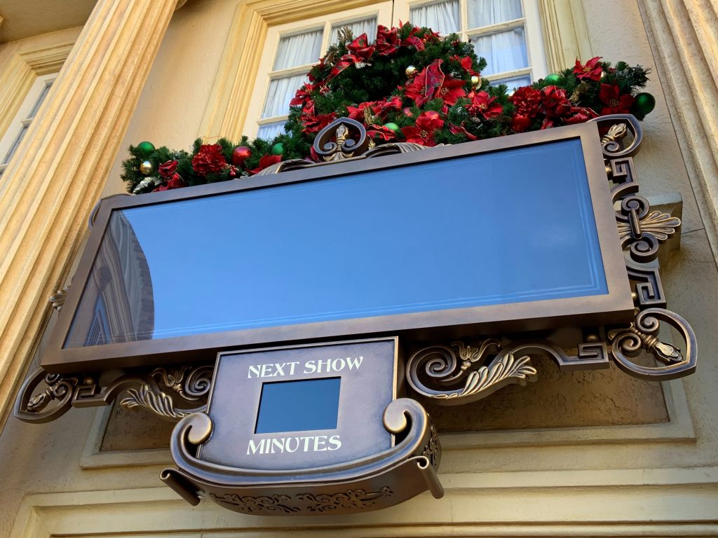 Disney recently installed a digital sign which will likely display whether the Beauty and the Beast sing-along or Impressions de France will be playing next. The wait time will also be displayed on this digital sign.