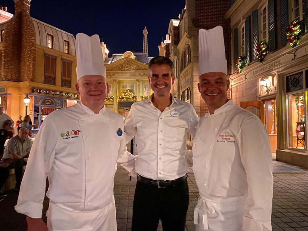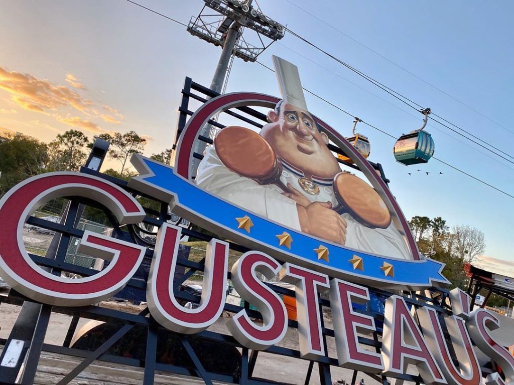 After Epcot closed yesterday, the Gusteau’s Restaurant sign was installed on the exterior of the forthcoming Remy’s Ratatouille Adventure attraction in the France pavilion.
