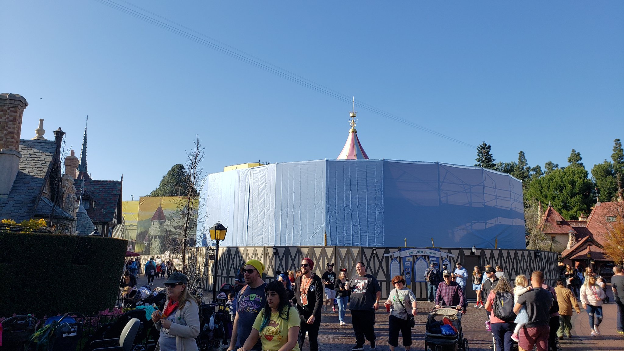 King Arthur Carrousel at Disneyland is now behind scrims as it undergoes an extensive refurbishment. See in the photos below: