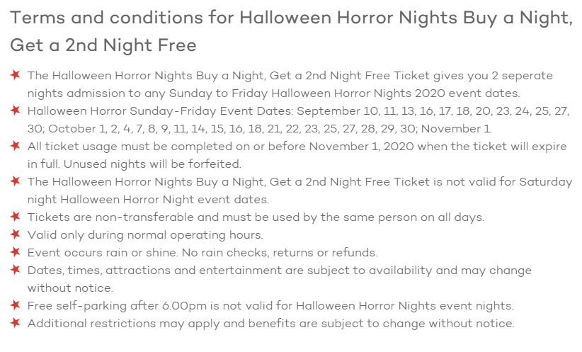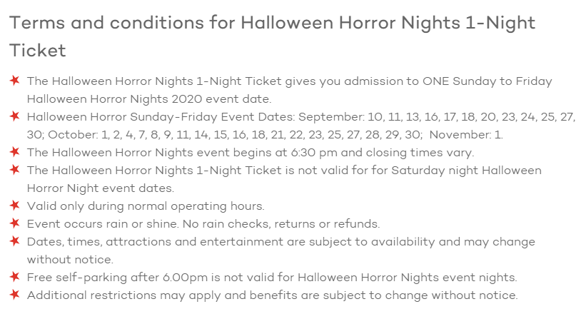 Multi-night HHN tickets didn’t go on sale until very late last year, according to UUOP. However, this year you can purchase yours now. There are currently three options available:
