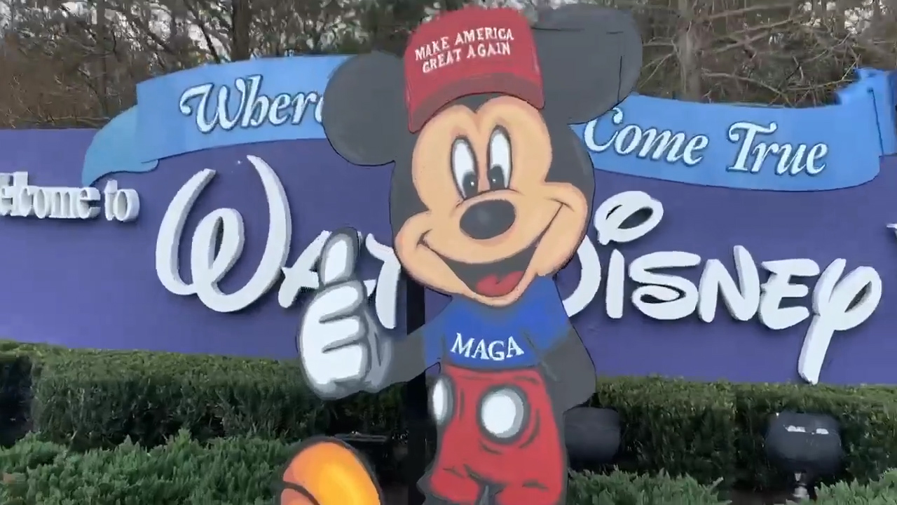 Sonksen, an Longwood artist who produced the MAGA Mickey, said the group peacefully moved to the other side of the street, however they plan to return and are contacting an attorney to find out if they have a right to at least remains on the sidewalk near the Walt Disney World sign.