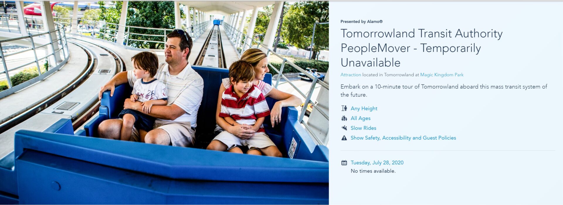 Presentl, the TTAPM has been removed from the My Disney Experience digital map, and is not officially listed as under refurbishment.