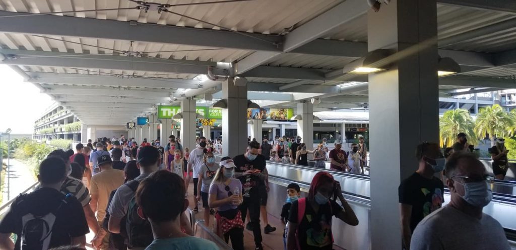I agree with the comment above. I went to Universal Studios August 3rd on a Monday. The park was not crowded at all .If anything uncrowded. Which was perfect for us . People were following the rules that we noticed. Staff continuously everywhere reminding guests to wear masks at all times above there nose. Hands were given sanitizer prior to boarding attractions . Distance markers on ground and separation on attractions. Temperature checks also at parking garage entrance prior to bag checking to parks. .My experience was great..super HOT day, but with the no wait and rapid entrances we zipped through everything which is unusual on summer Orlando visits.