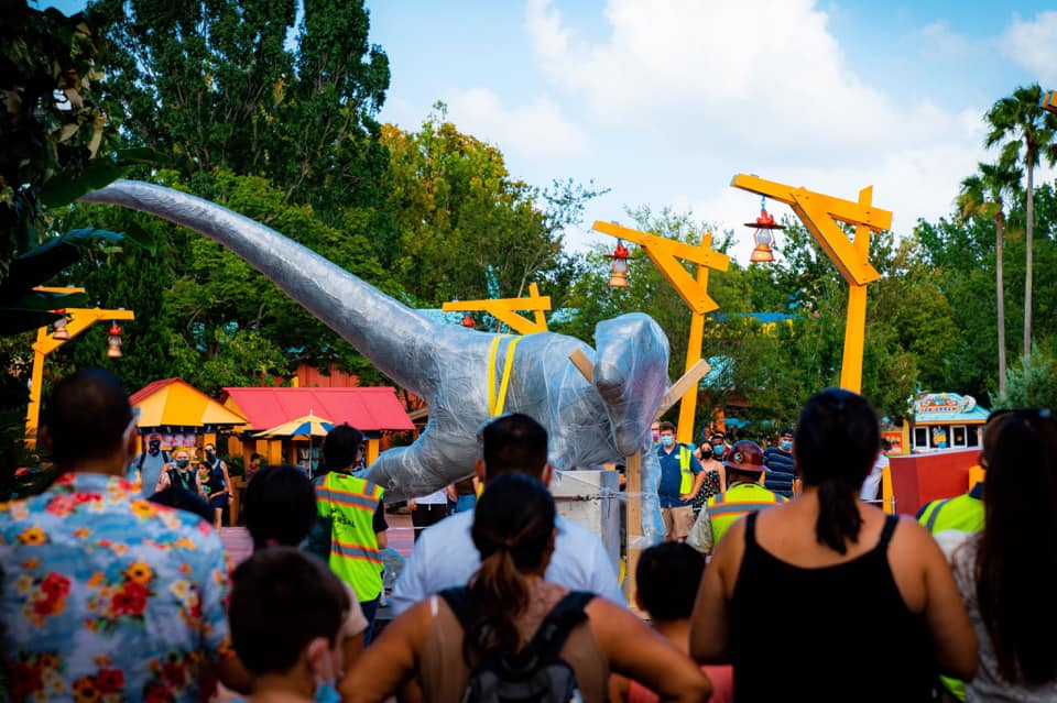 It can be assumed that the dinosaur figure is being installed within one of the roller coaster’s show scenes.