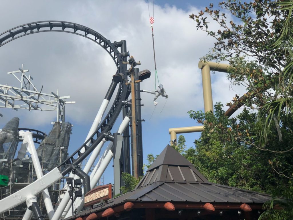A raptor figure has arrived on the site of the unannounced Jurassic Park roller coaster at Universal’s Islands of Adventure.
