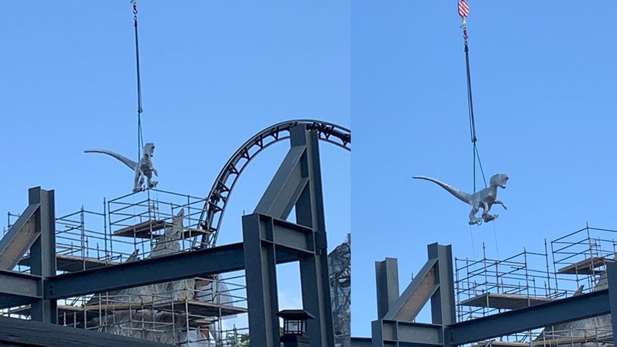 A second raptor figure has arrived on the site of the unannounced Jurassic Park roller coaster at Universal’s Islands of Adventure.