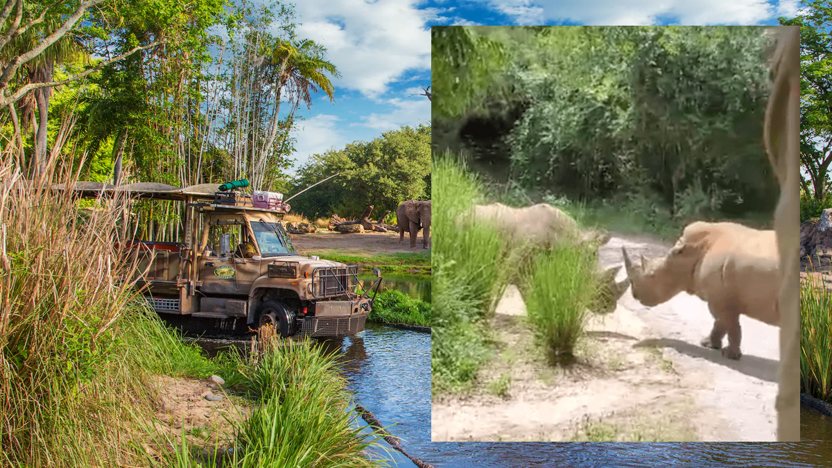 “We were on the Kilimanjaro Safaris today [yesterday – 28th August] at Animal Kingdom and these two rhinos come running out in front of us out of nowhere, fighting. Our safari guide had to throw his brakes on. The rhinos proceeded to fight right in front of us, even ramming into our safari truck, which gave us all quite a shock. We had to sit on the trail for about 15 minutes until our driver got the clearance to proceed. It was the craziest thing we’ve ever experienced!”