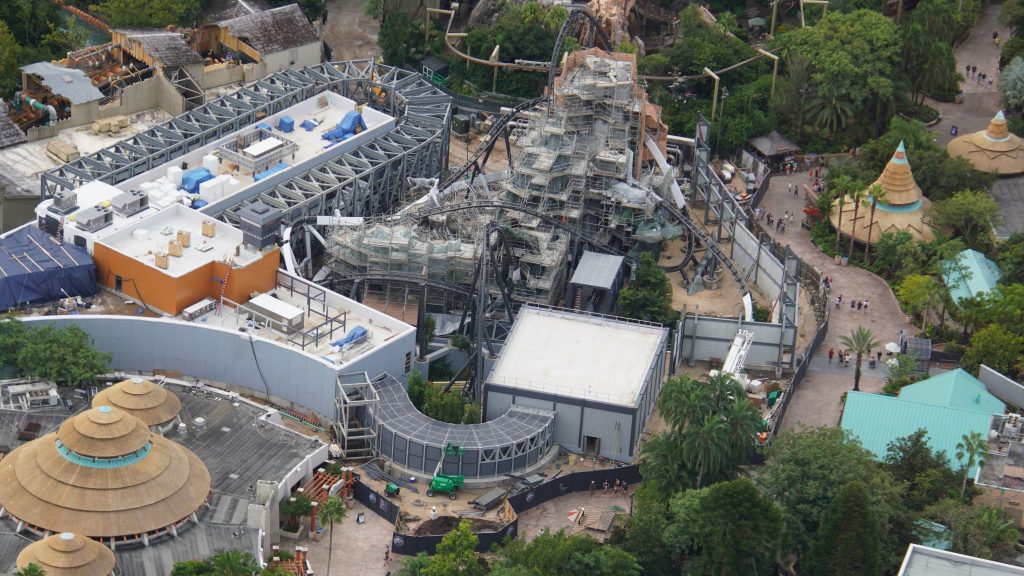 - Image #1: Aerial overview of Islands of Adventure. Notice that the tower crane has been removed at the unannounced Jurassic Park roller coaster.