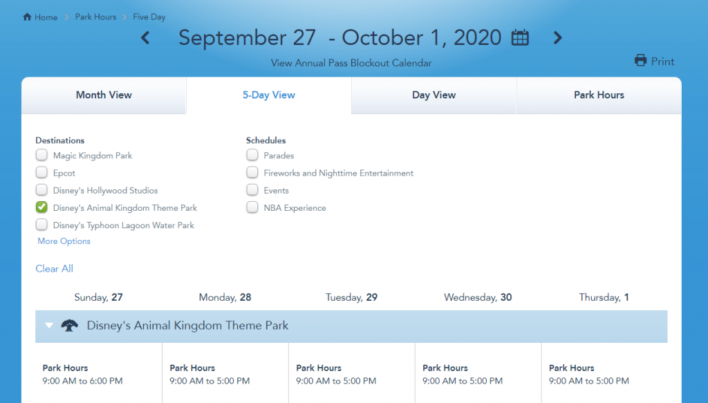 The Disney Park Pass Availability calendar shows no availability at Animal Kingdom on the above-mentioned dates. The extended hours for the 27th September suggests to us that Animal Kingdom is expected to reach capacity soon.
