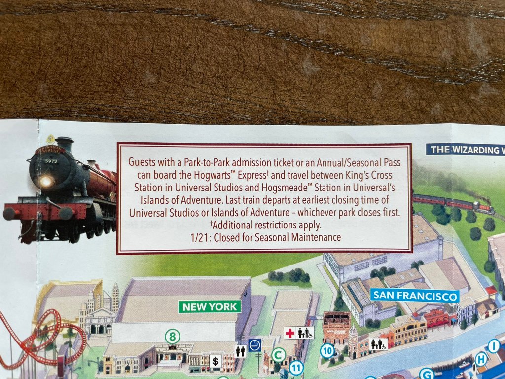 The Hogwarts Express will close on the 21st January, 2021, for seasonal maintenance. The attraction’s one day closure is already listed on the park’s map. See below: