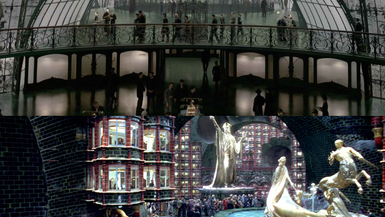 Inside the atrium will be the ride’s entrance on the left and its exit on the right. To exit the Ministry you can go back to the fireplaces, but use the ones on the opposite wall from where you entered. It’s not clear what you exit out of, but they could be themed as a row of phone booths on the outside—or probably just more fireplaces.