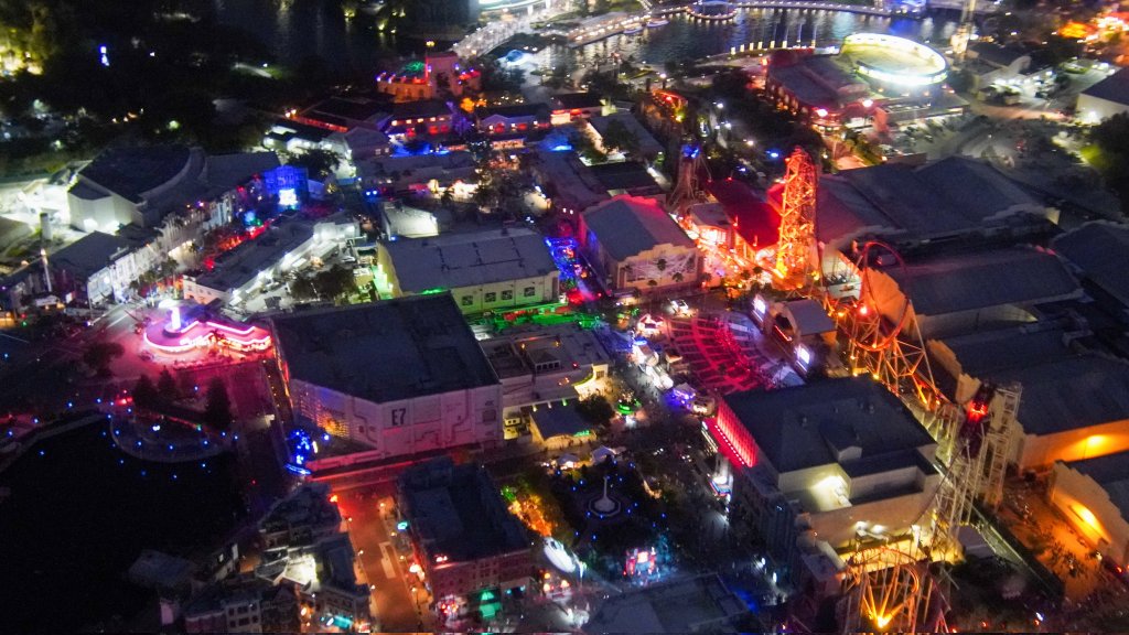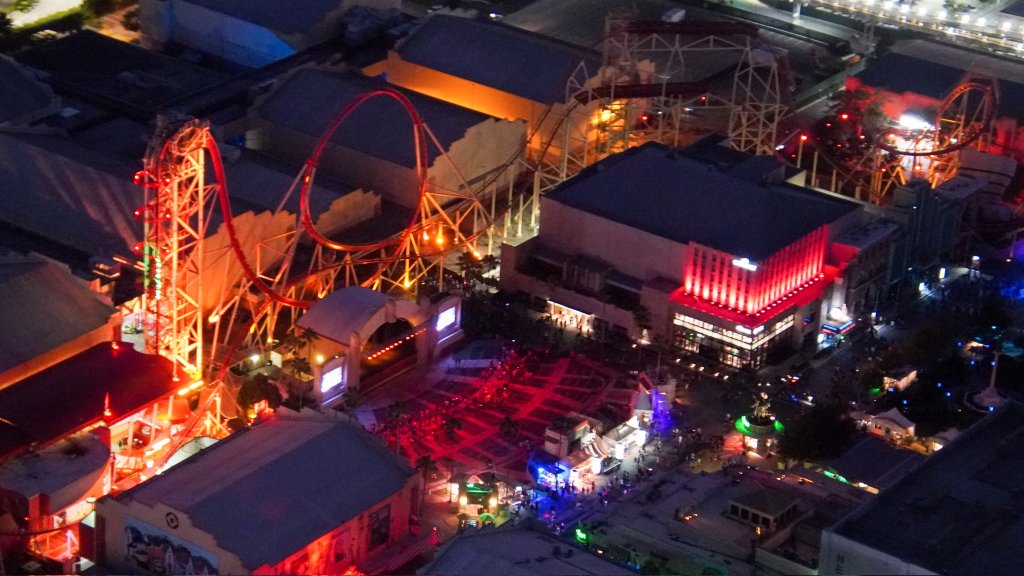 Twitter user @bioreconstruct has given us a bird’s eye view of Universal Orlando at night.