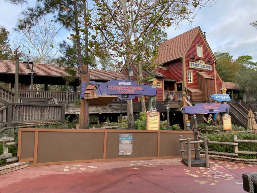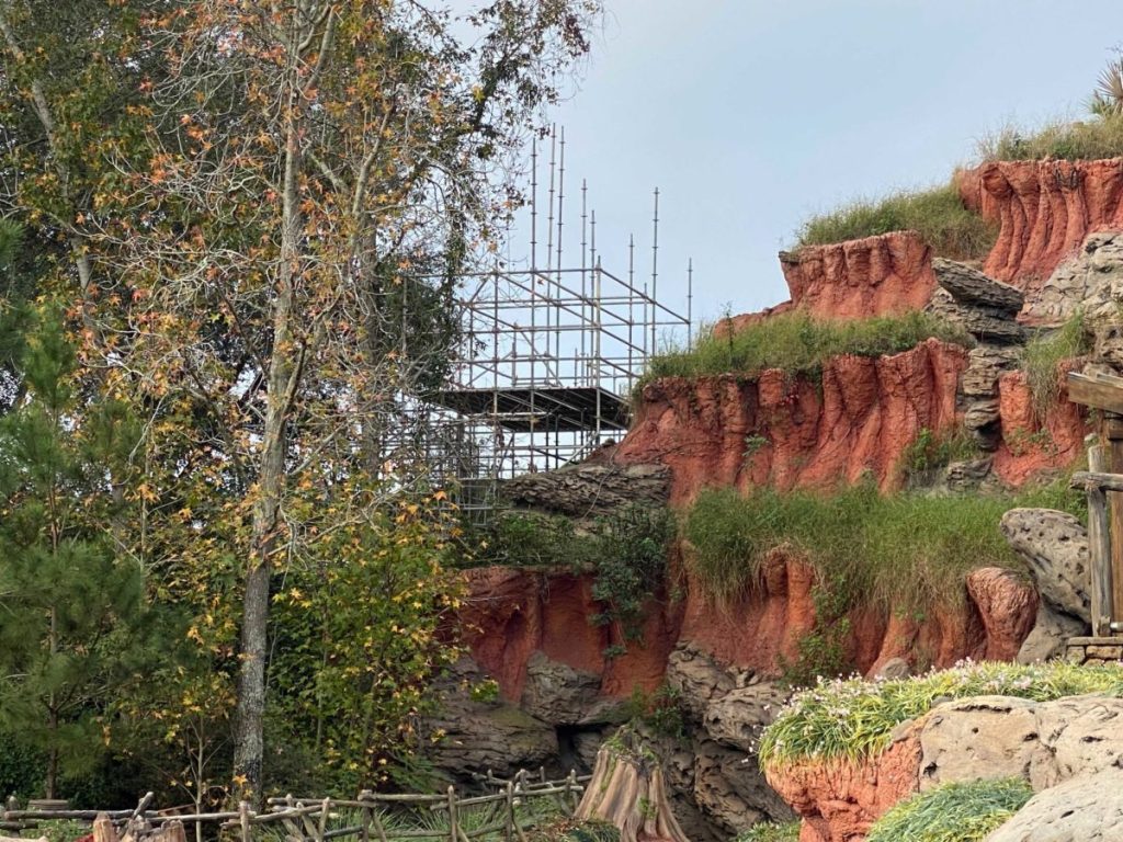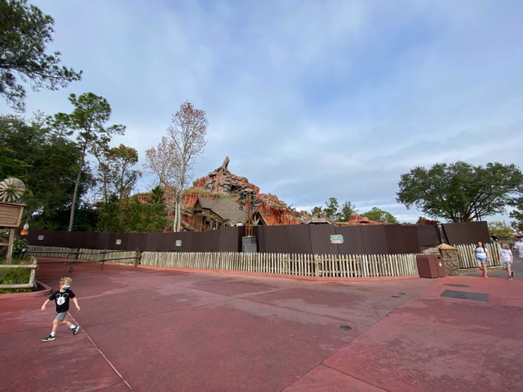 As the photos below show, construction walls and “scrim” surround the attraction: