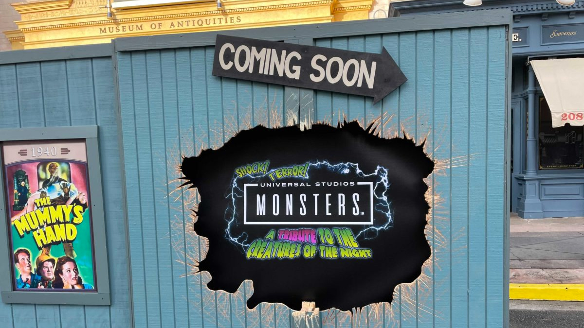 The photo below offers a closer look at the sign, which reads “Universal Studios Monsters. A Tribute to the Creatures of the Night”:
