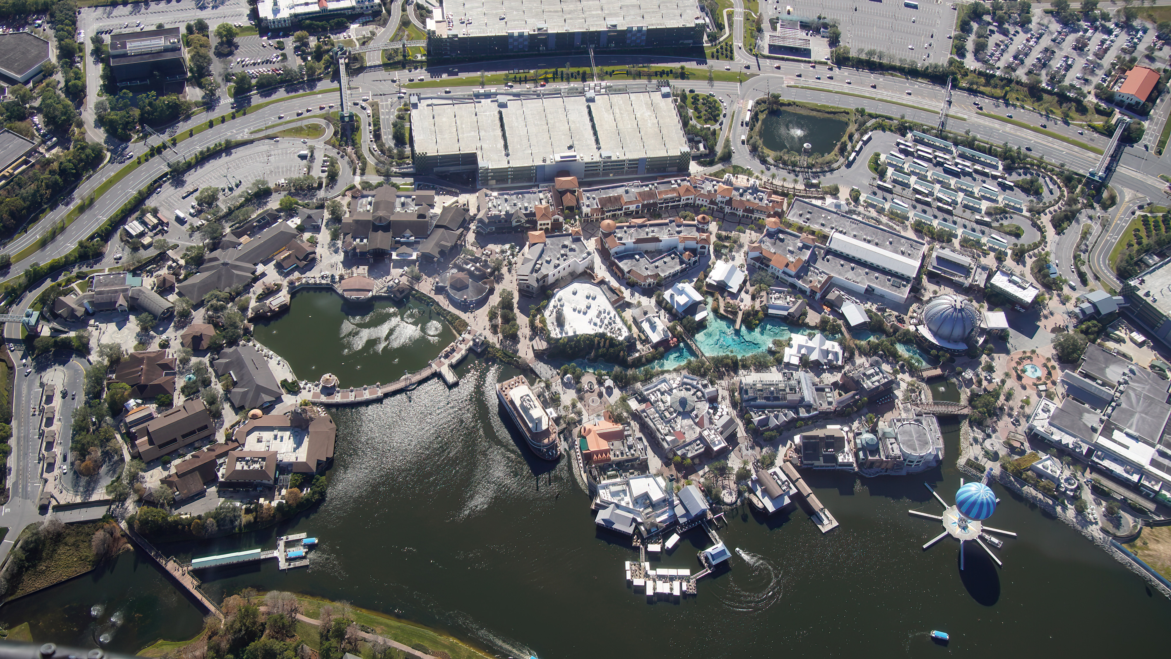 - Image #23: Nearly straight-down aerial photo of much of Disney Springs (Jan 30). There’s a line of cars entering the Lime parking garage.