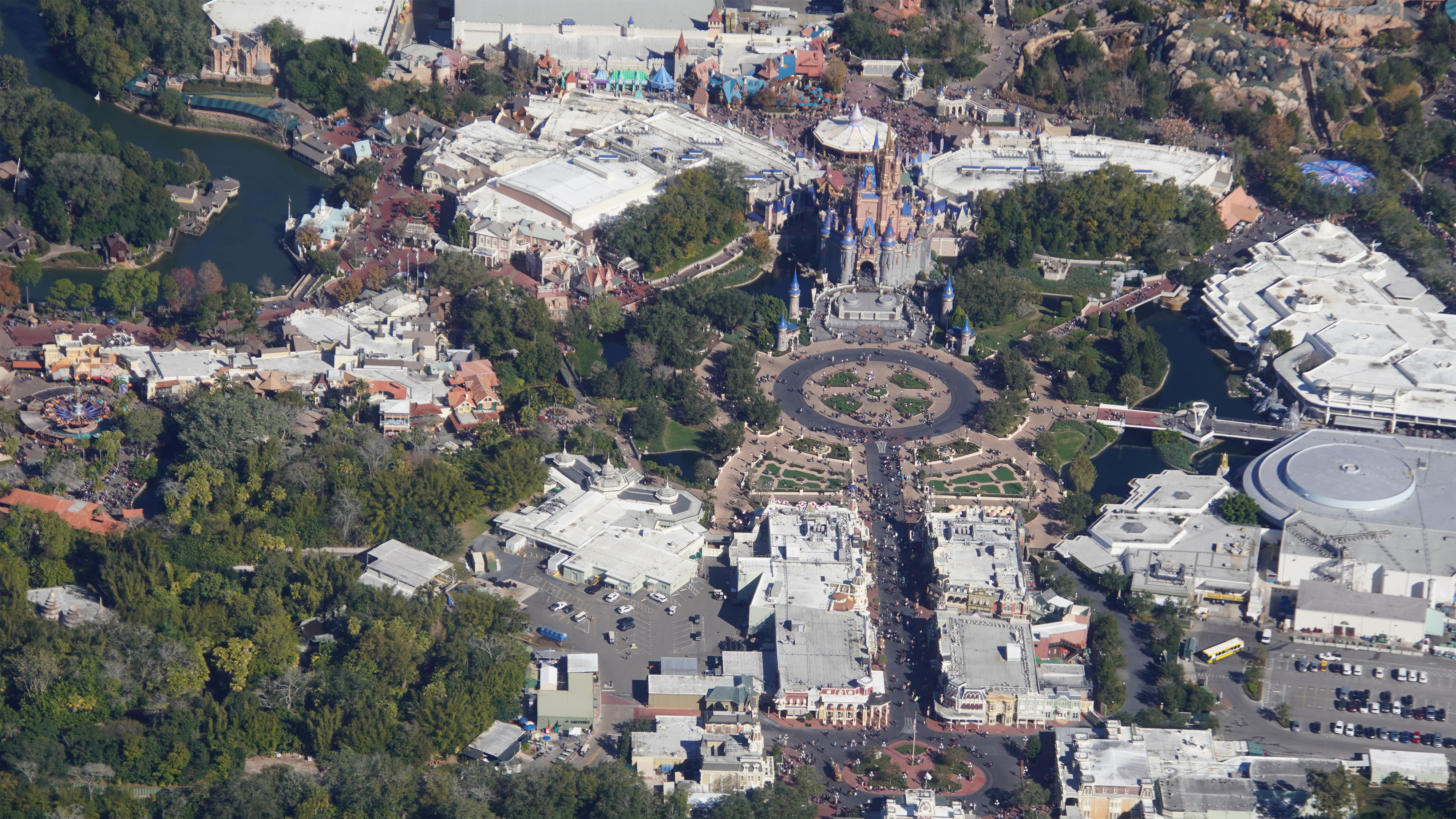 - Image #4: Aerial overview of Magic Kingdom. Top center is the monorail roundhouse.
