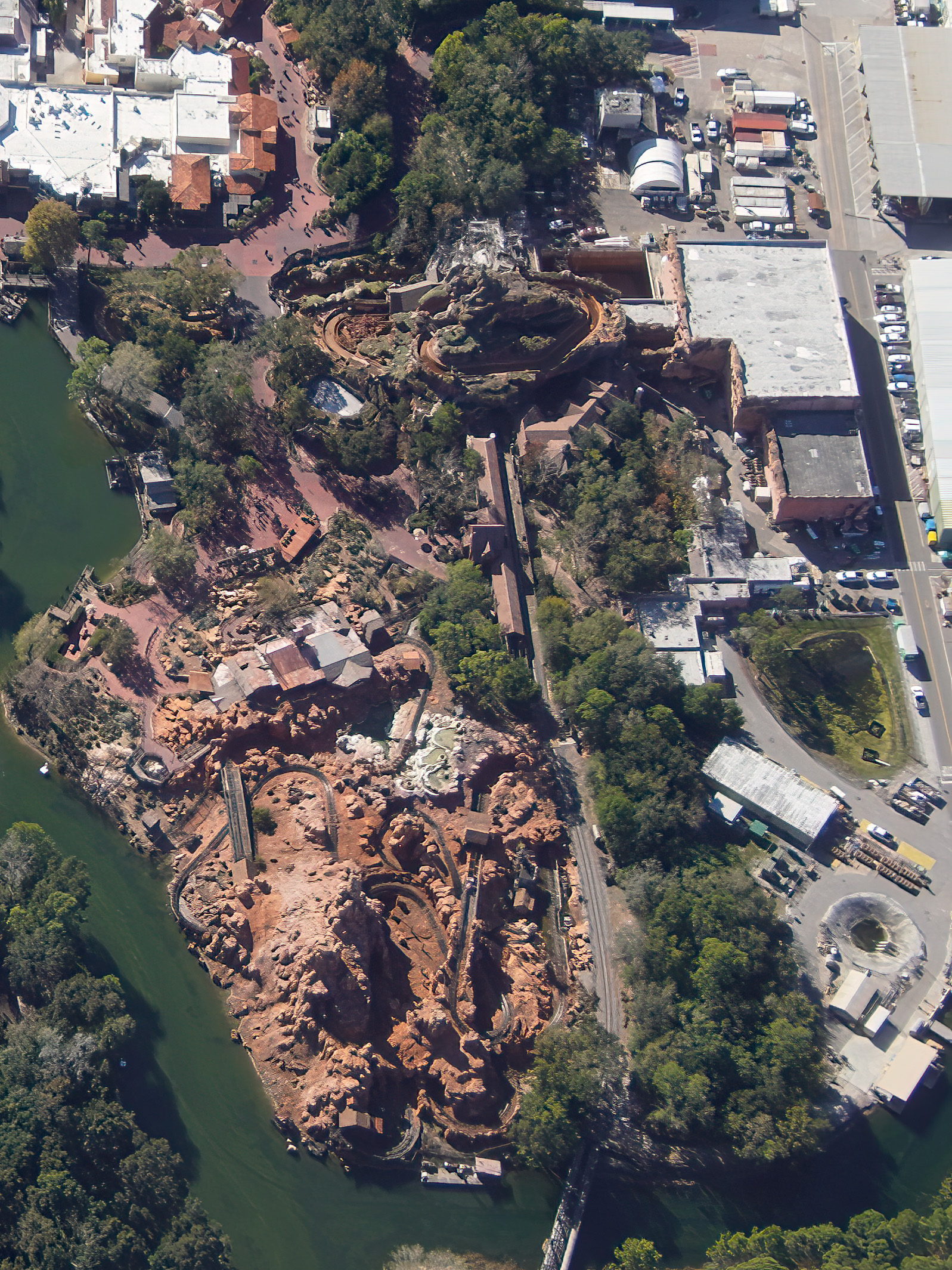 - Image #8: Aerial look at Big Thunder Mountain Railroad. Nearby is Splash Mountain, drained for refurbishment. Road at right is a common water stop location in #runDisney courses through Magic Kingdom.