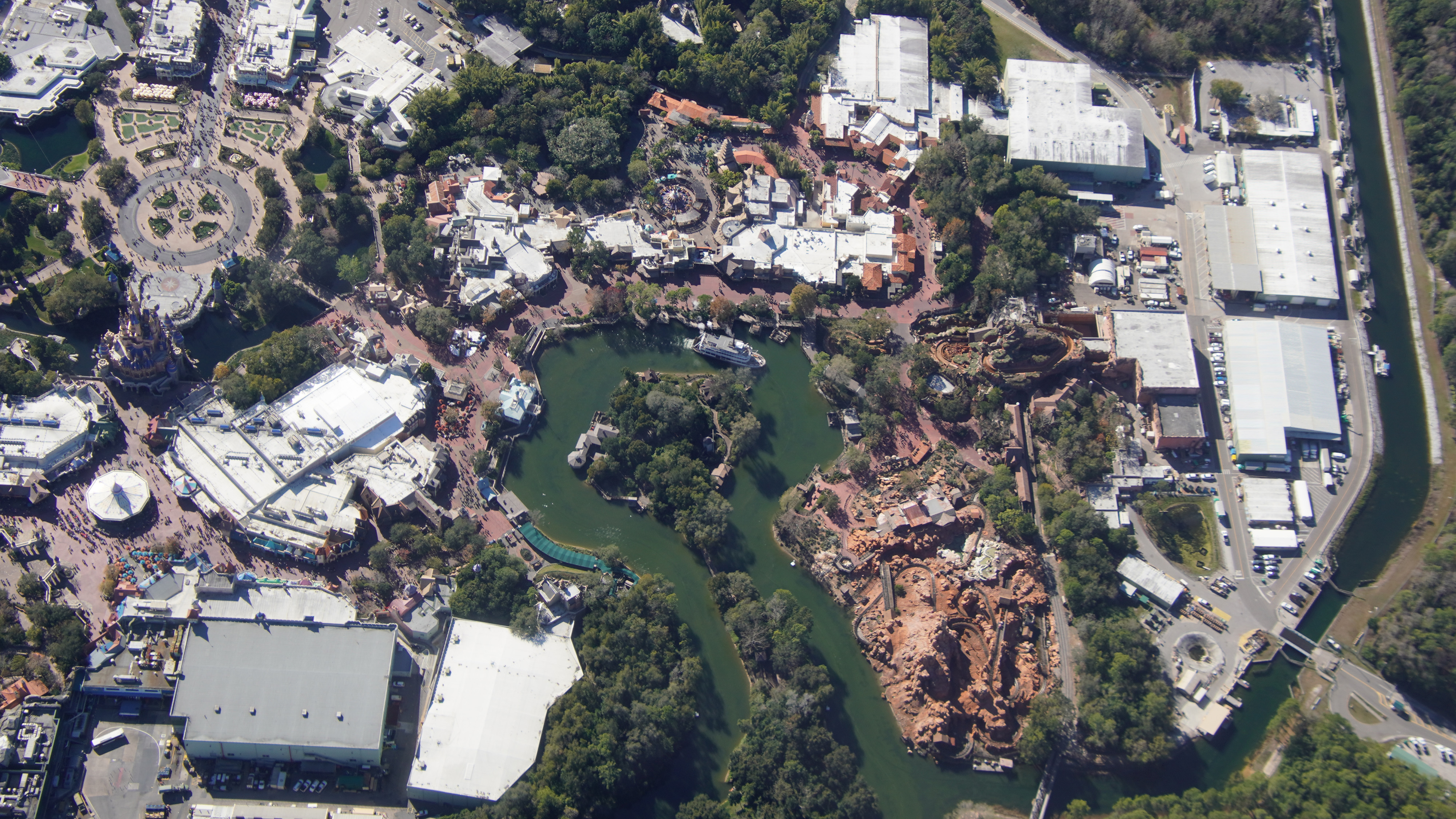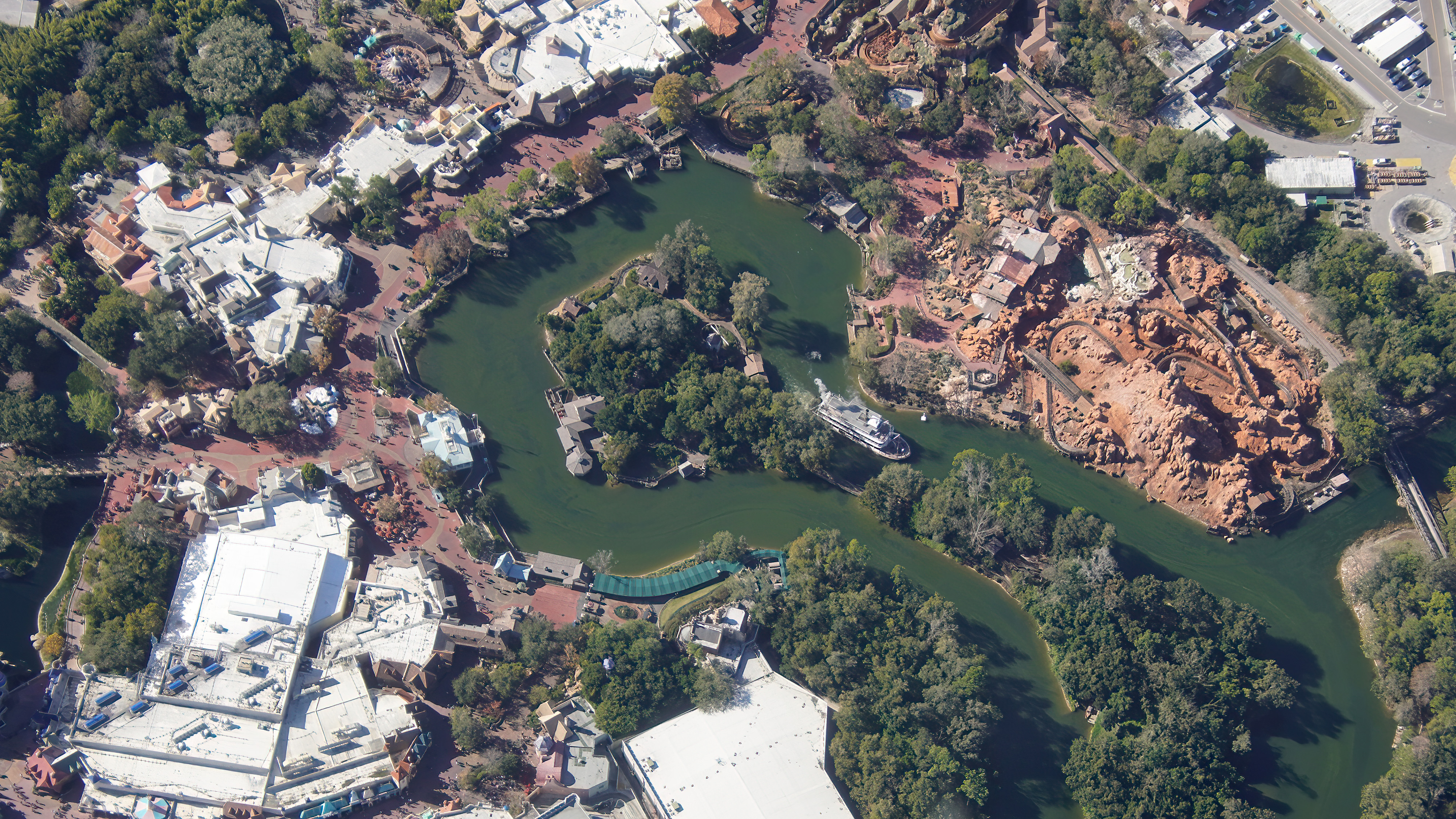 - Image #9: Aerial look at Rivers of America, Big Thunder, and Splash Mountain (in refurbishment). Show building in top left is Haunted Mansion.