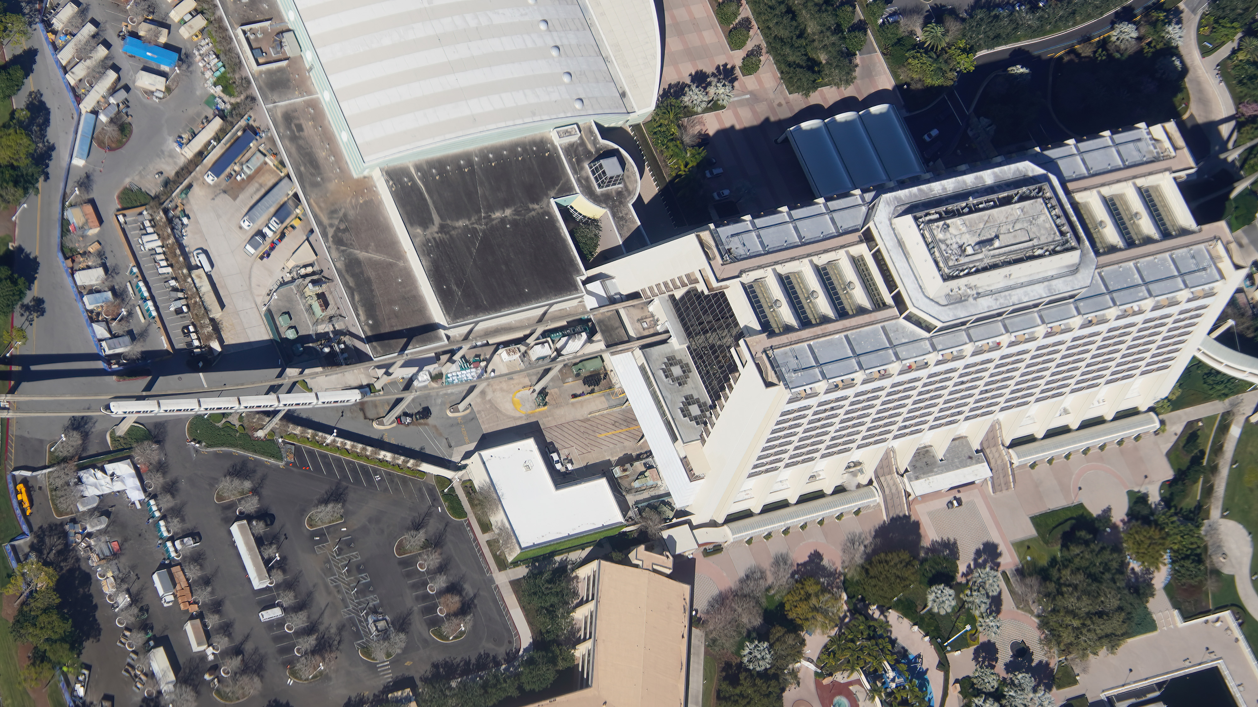 - Image #24: Almost straight-down aerial look (Jan 30) at Monorail Black approaching Contemporary Resort.