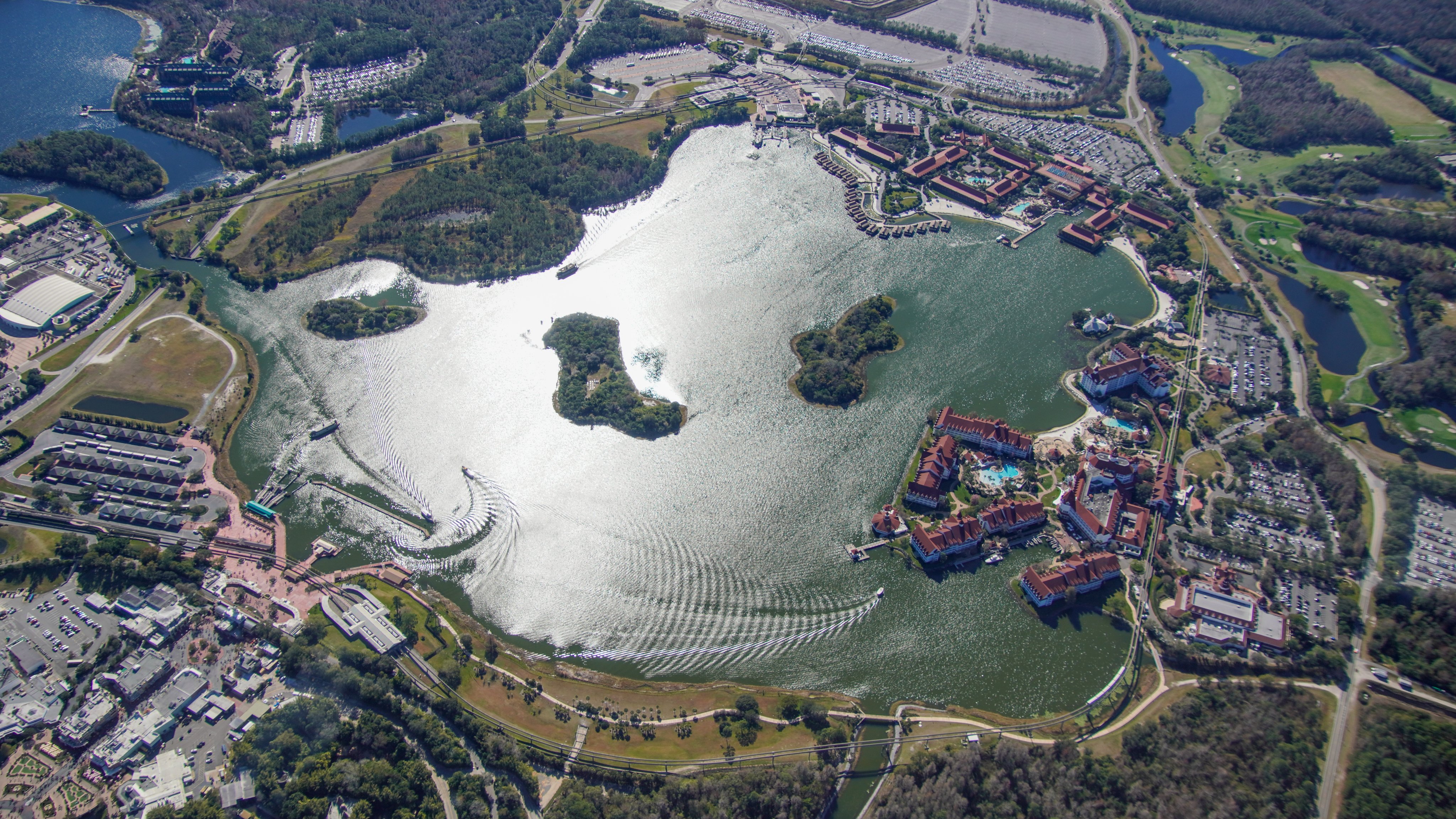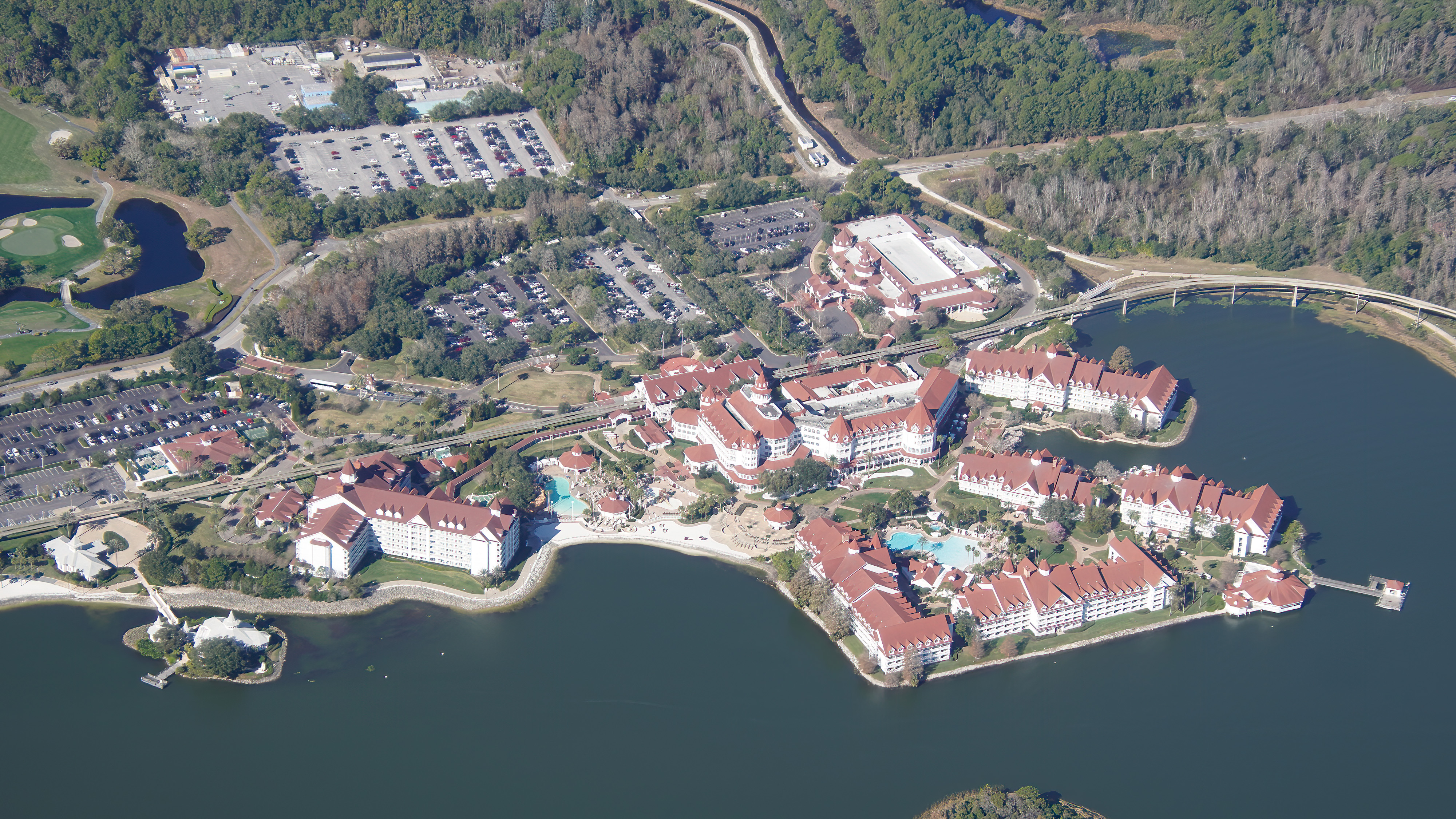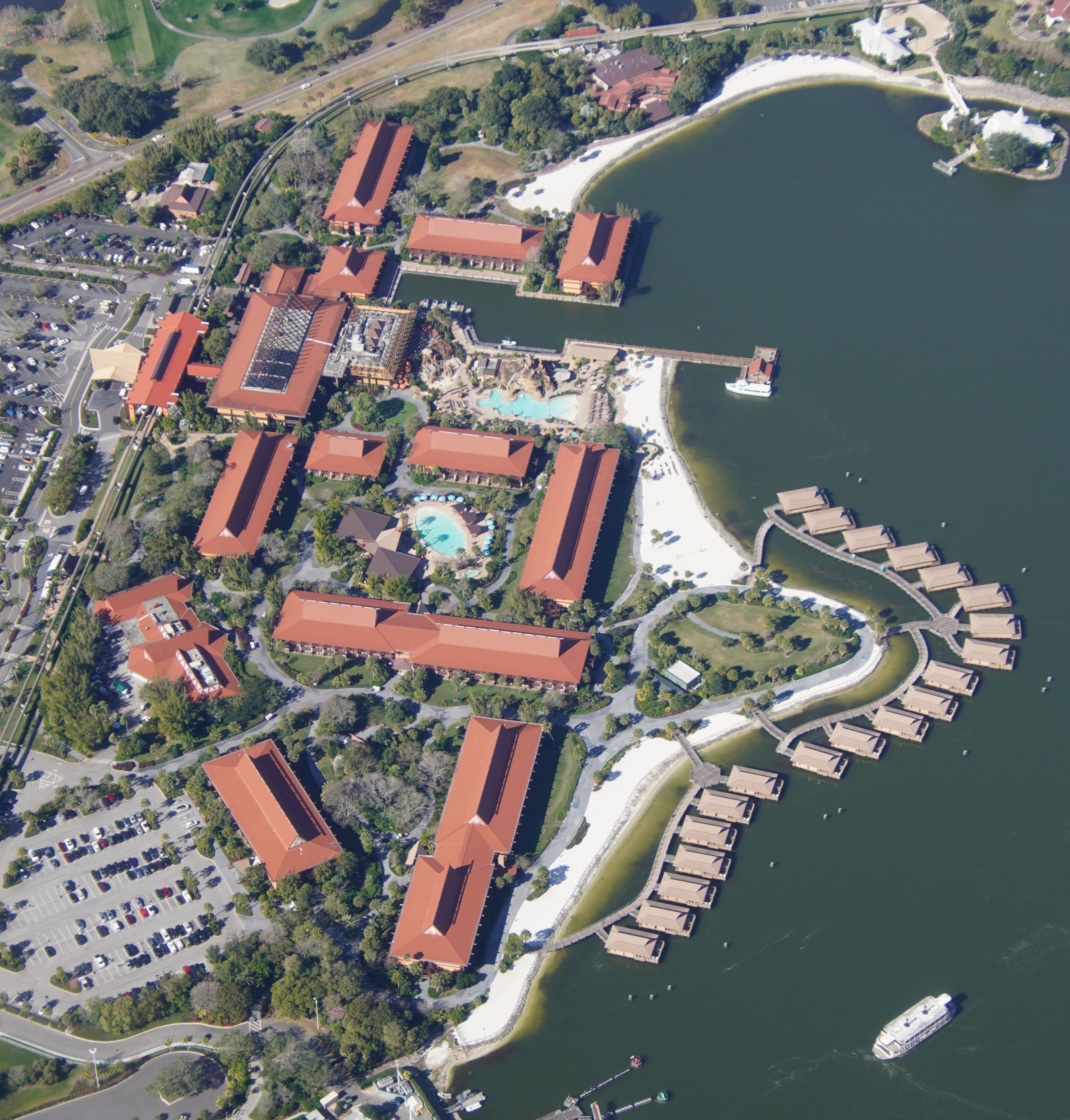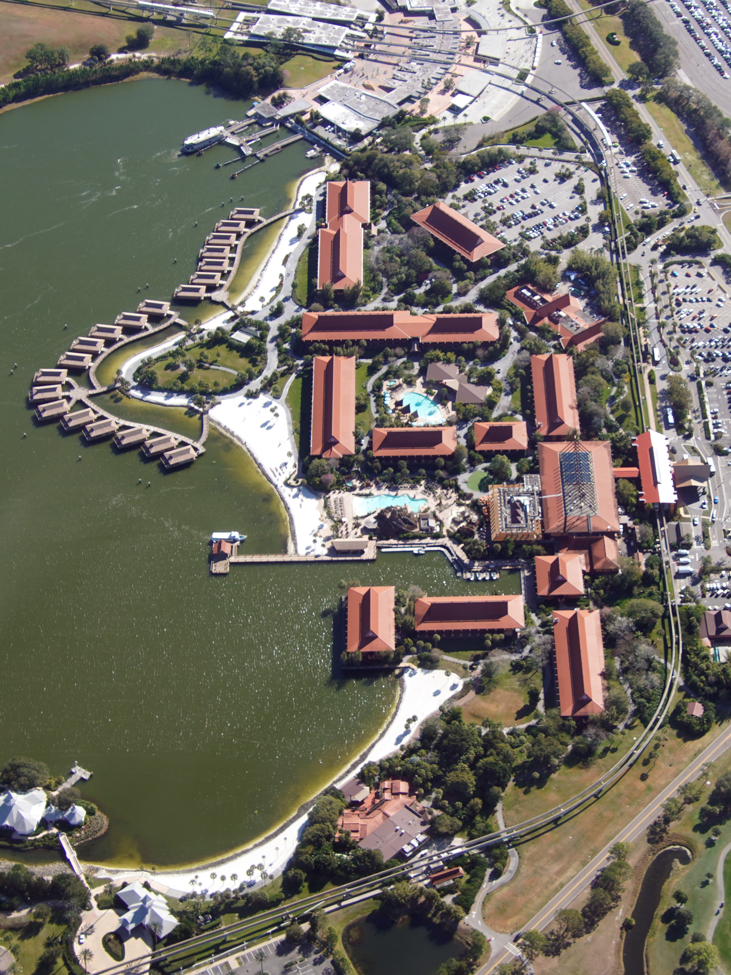 - Image #30: Aerial overview of EPCOT Resorts. There are actually 2 roads passing under water at International Gateway. (Bottom center of photo.) One is the EPCOT perimeter service road. The other is a guest road for the resorts.