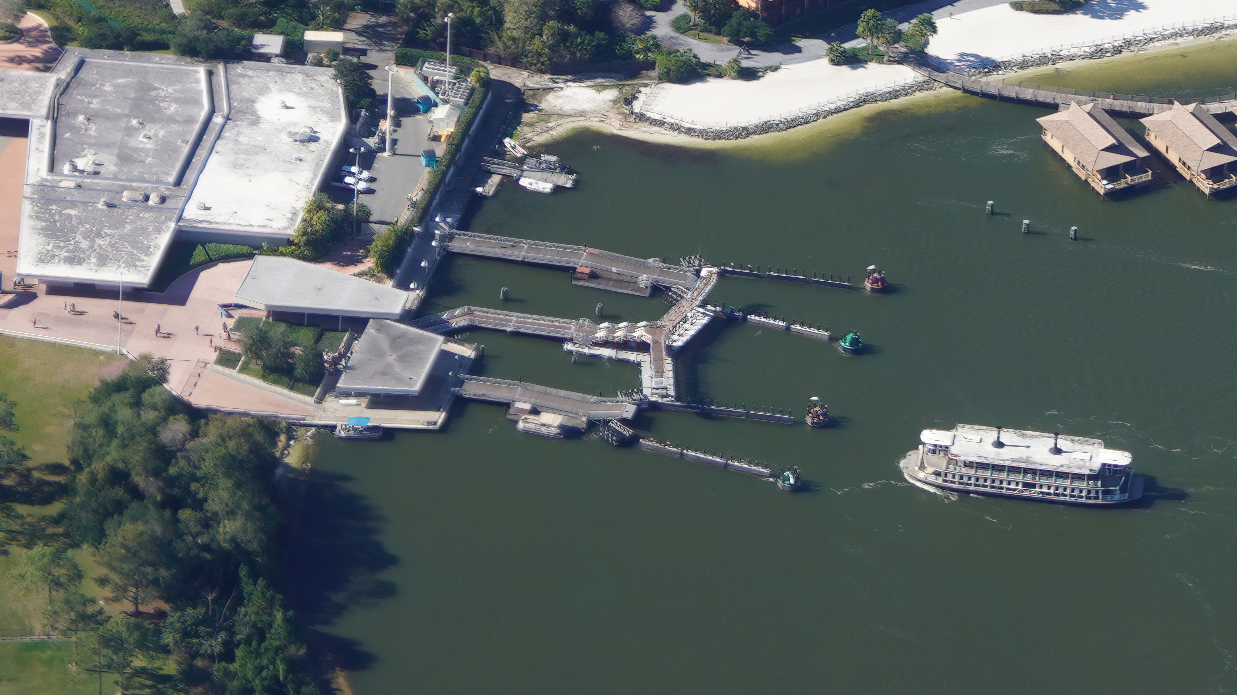 - Image #34: In this aerial overview of Seven Seas Lagoon from 3100 feet you can trace the walkway between Magic Kingdom and Grand Floridian. It’s hard to gauge from monorail how large the site is between Contemporary and TTC. Interesting wave patterns from boats.