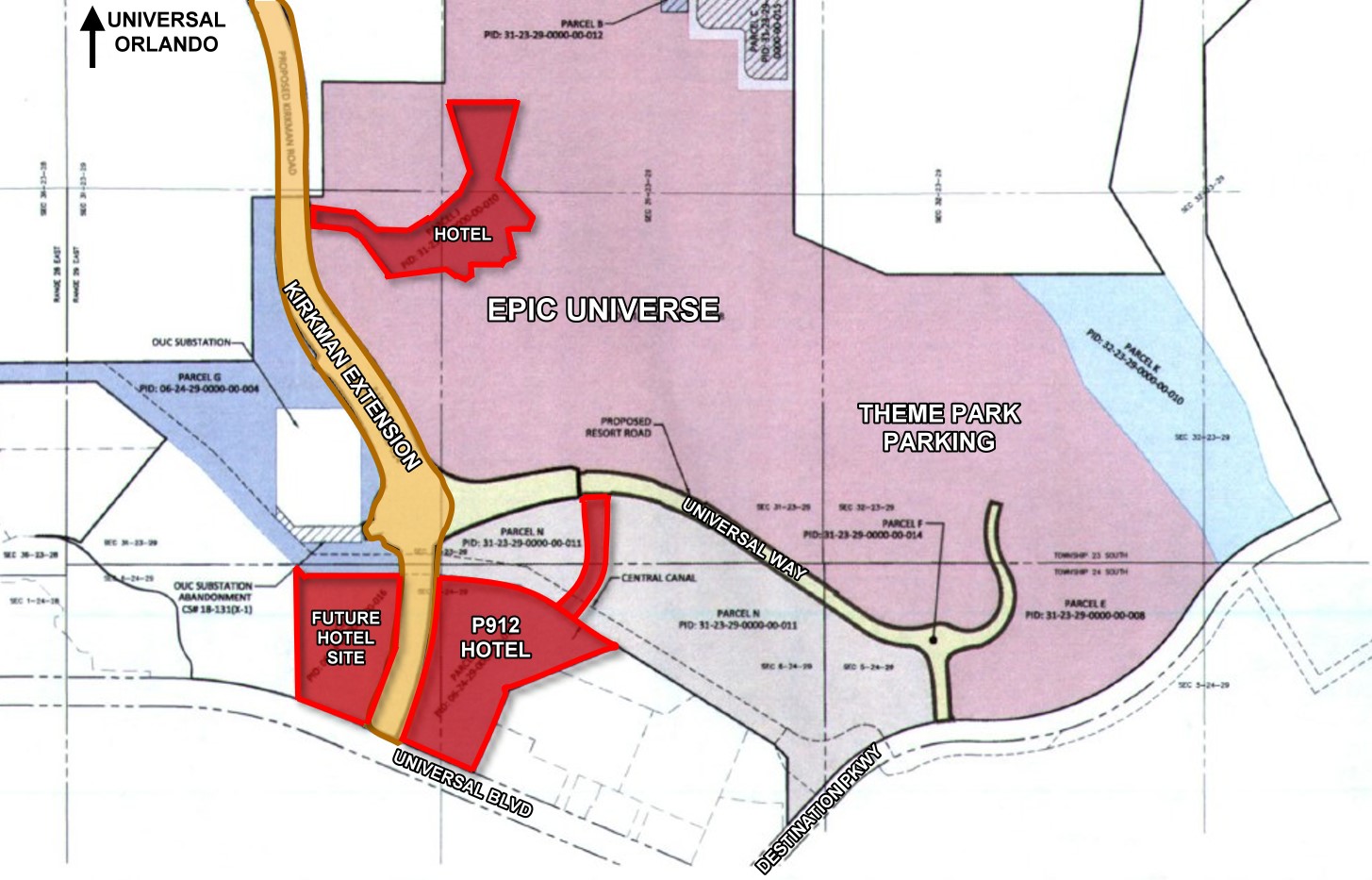 “New permits seem to confirm that at least one additional hotel is in development for the southern property. The new hotel would be located across the street from Epic Universe, directly in front of the new theme park’s main entrance. Known as Project 912, this hotel may only be the beginning of a much larger resort area for Universal’s Epic Universe.”