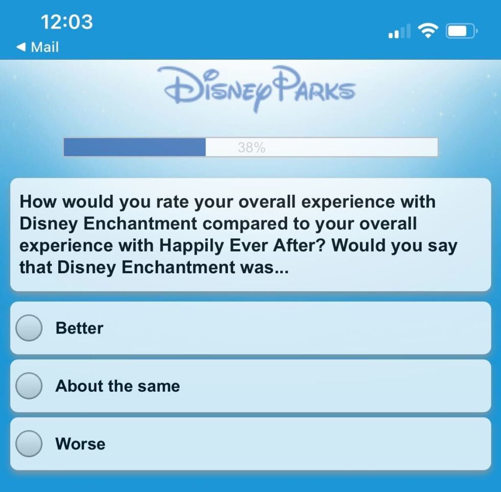 Another question asked guests to compare their experience with Disney Enchantment to Wishes, the fireworks show that ran for almost 15 years.