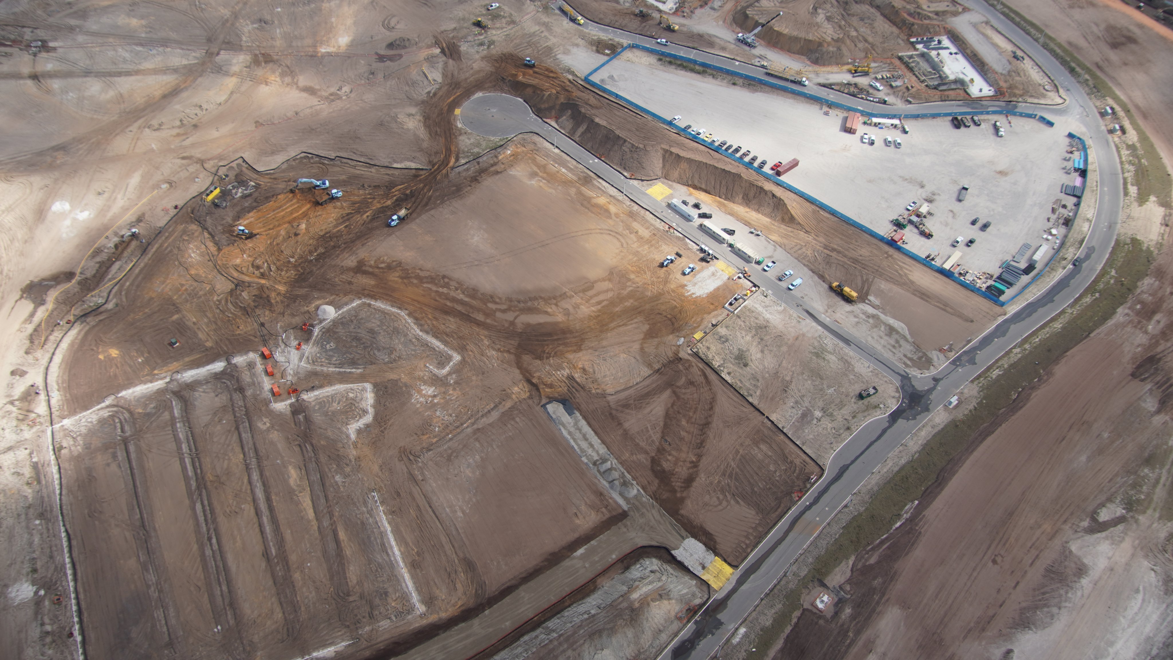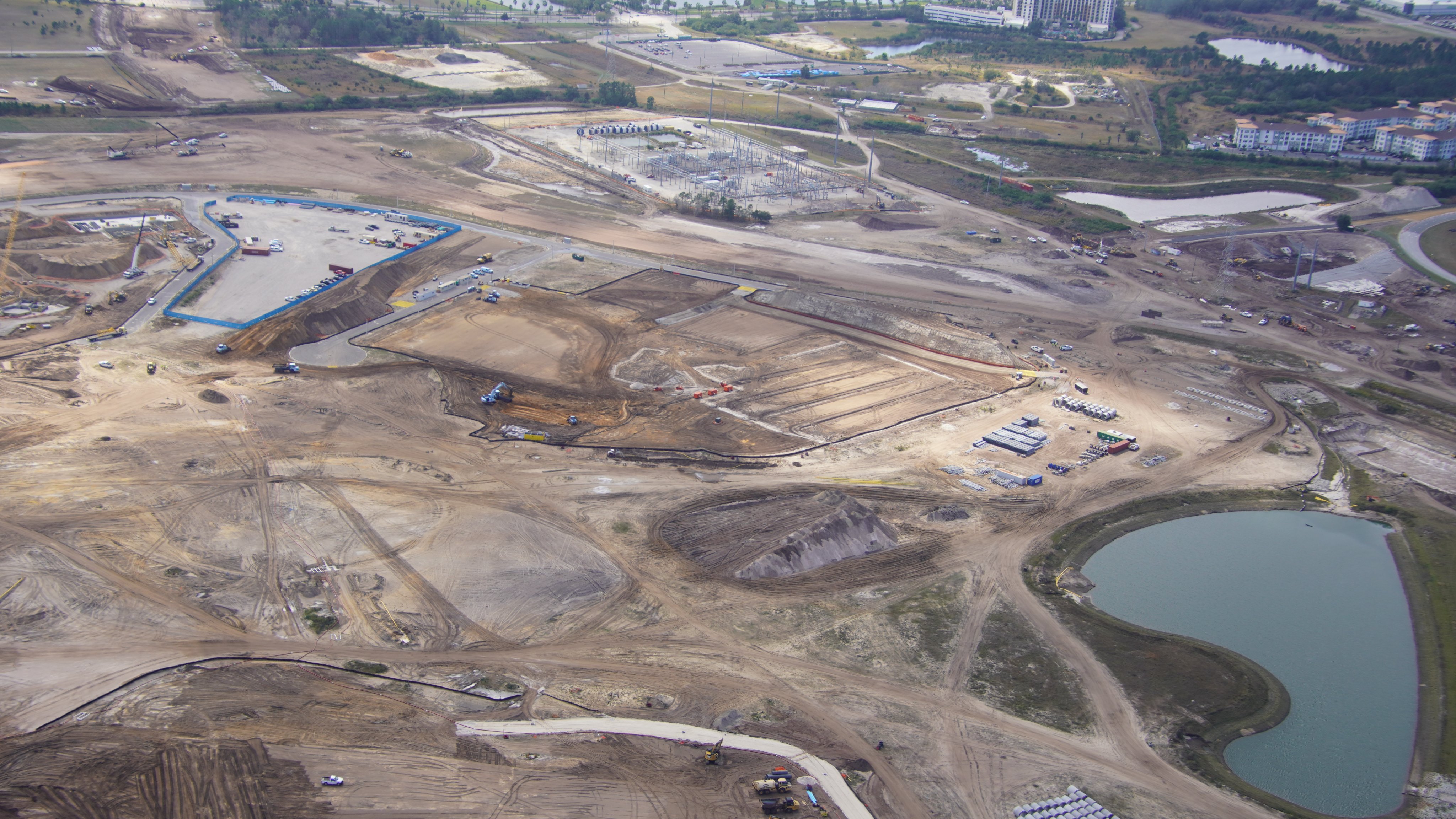 - Image #24: Aerial look at a staging area for electrical construction in Epic Universe.
