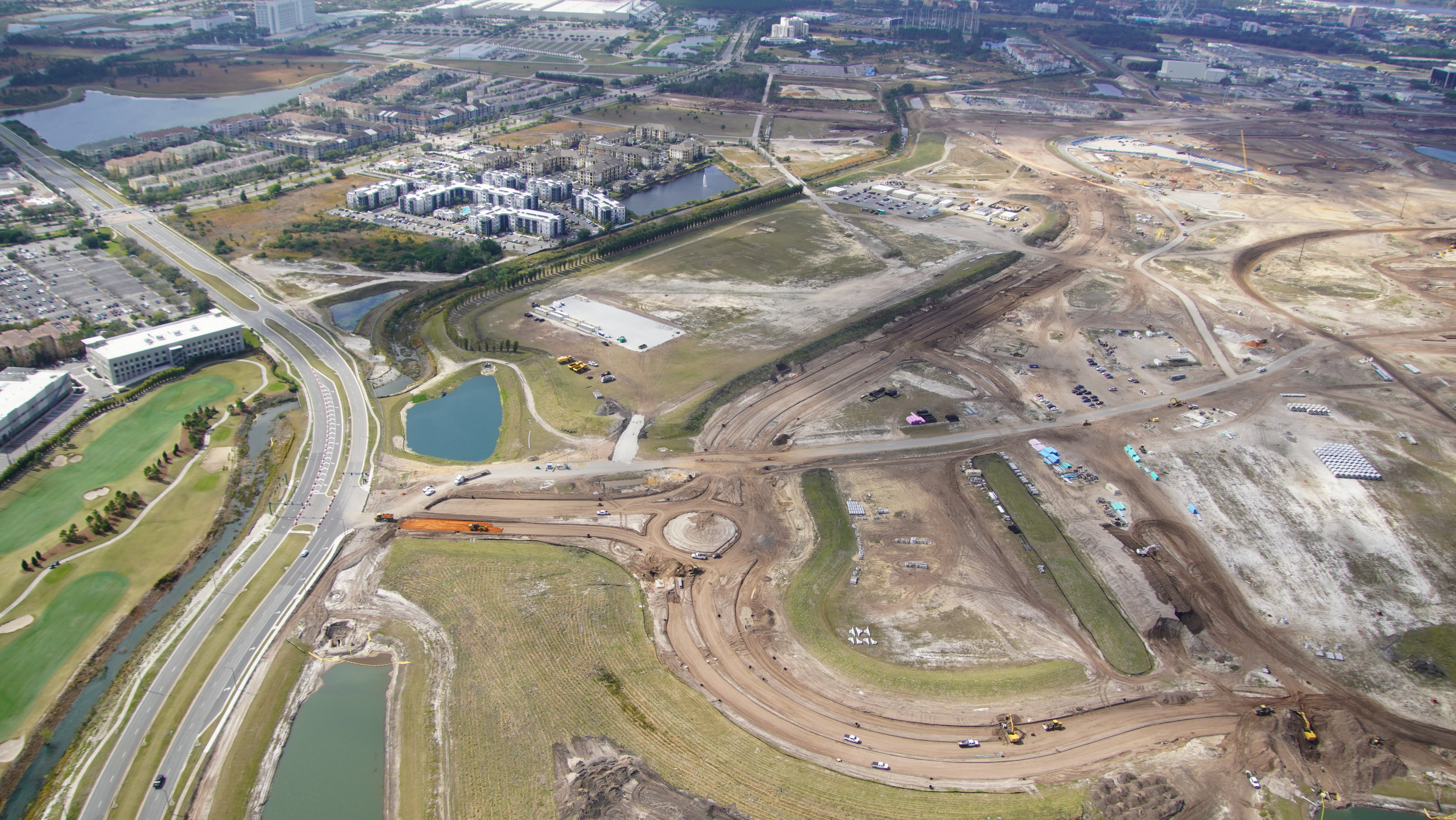 - Image #26: Aerial look at what will be the intersection of Universal Blvd and the extension of Kirkman Rd. Orlando Park Stop recently reported that there’s permits for an Epic Universe hotel at the arrow.
