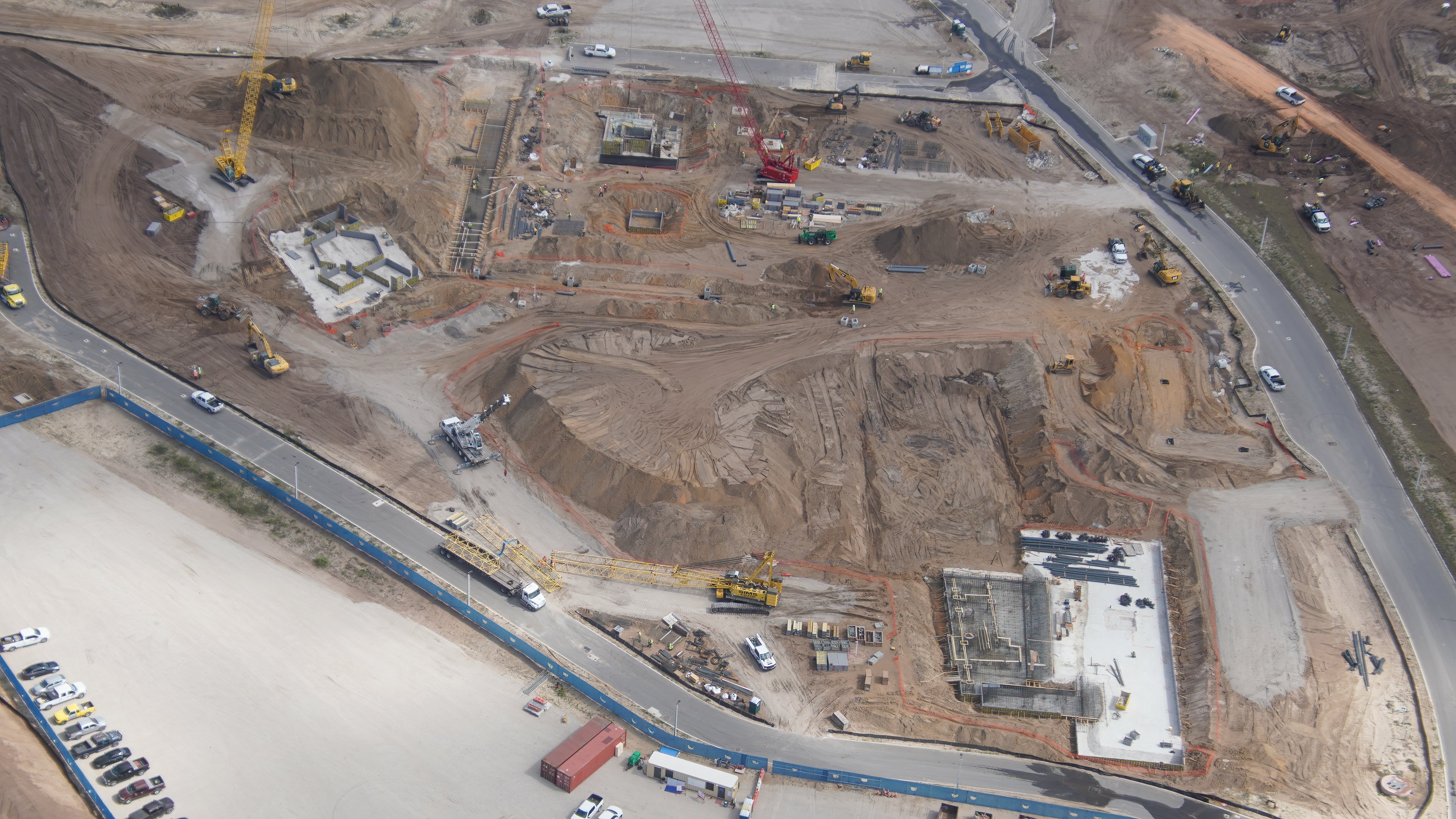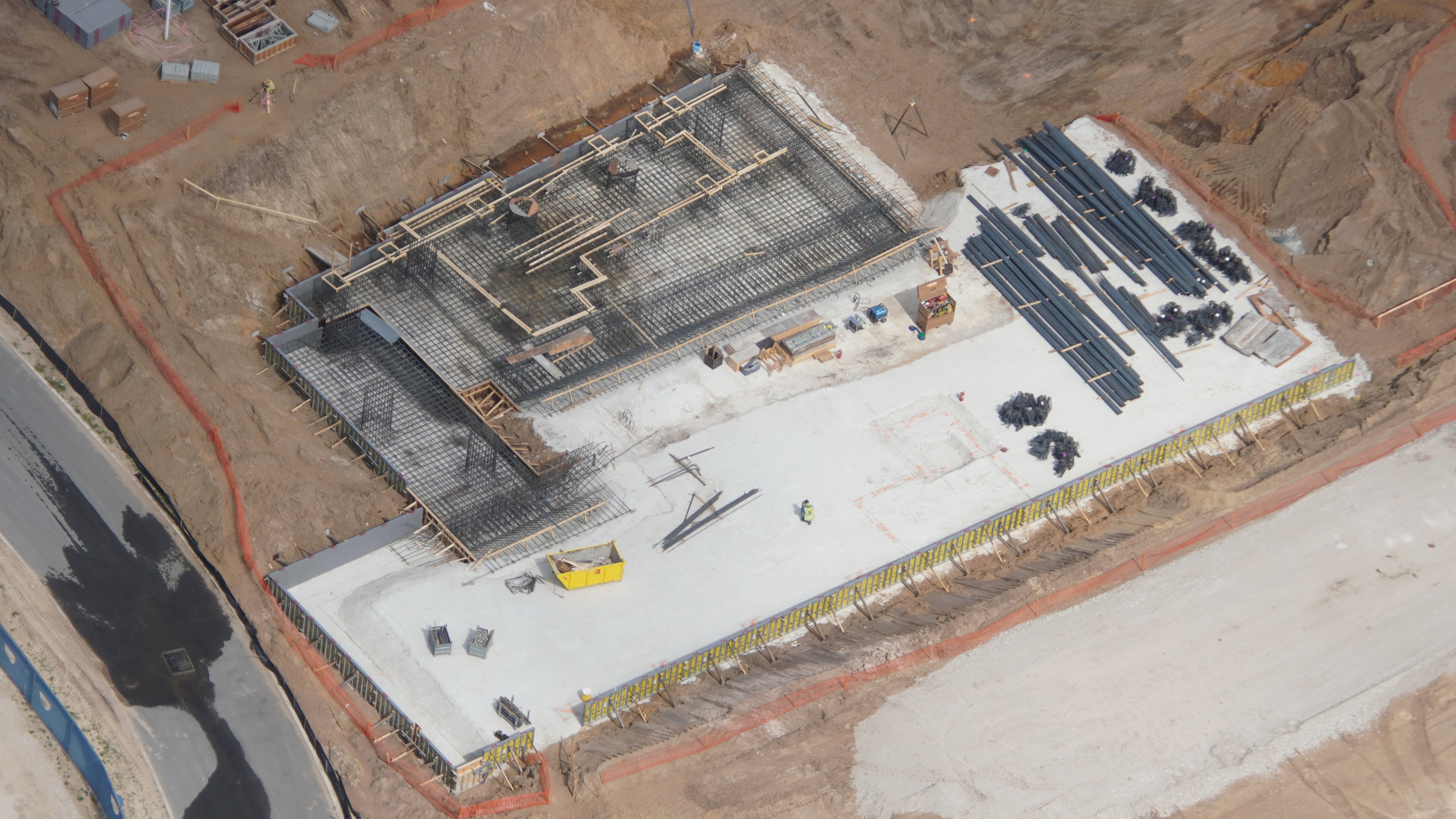 - Image #13: Aerial look at excavation and concrete work for a show building in Super Nintendo World at Epic Universe.