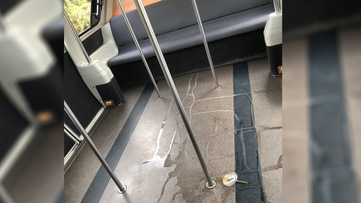As the photo below shows, a wet mess was left by a guest on a Monorail for Walt Disney World Cast Members to clean up.