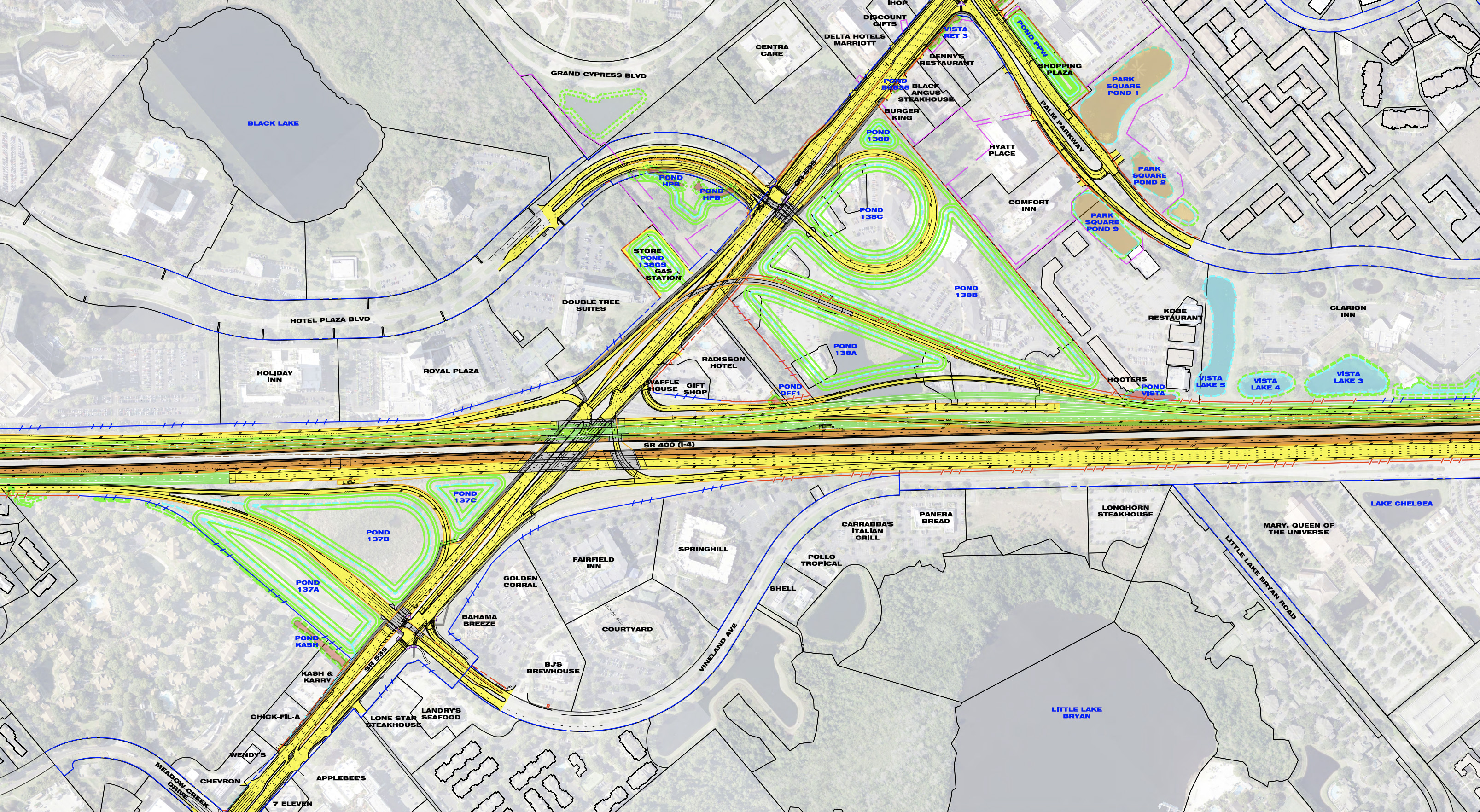 - Image #2: Aerial overview of former CrossRoads plaza will be demolished. New ramps to improve I-4/SR-535 traffic are planned.