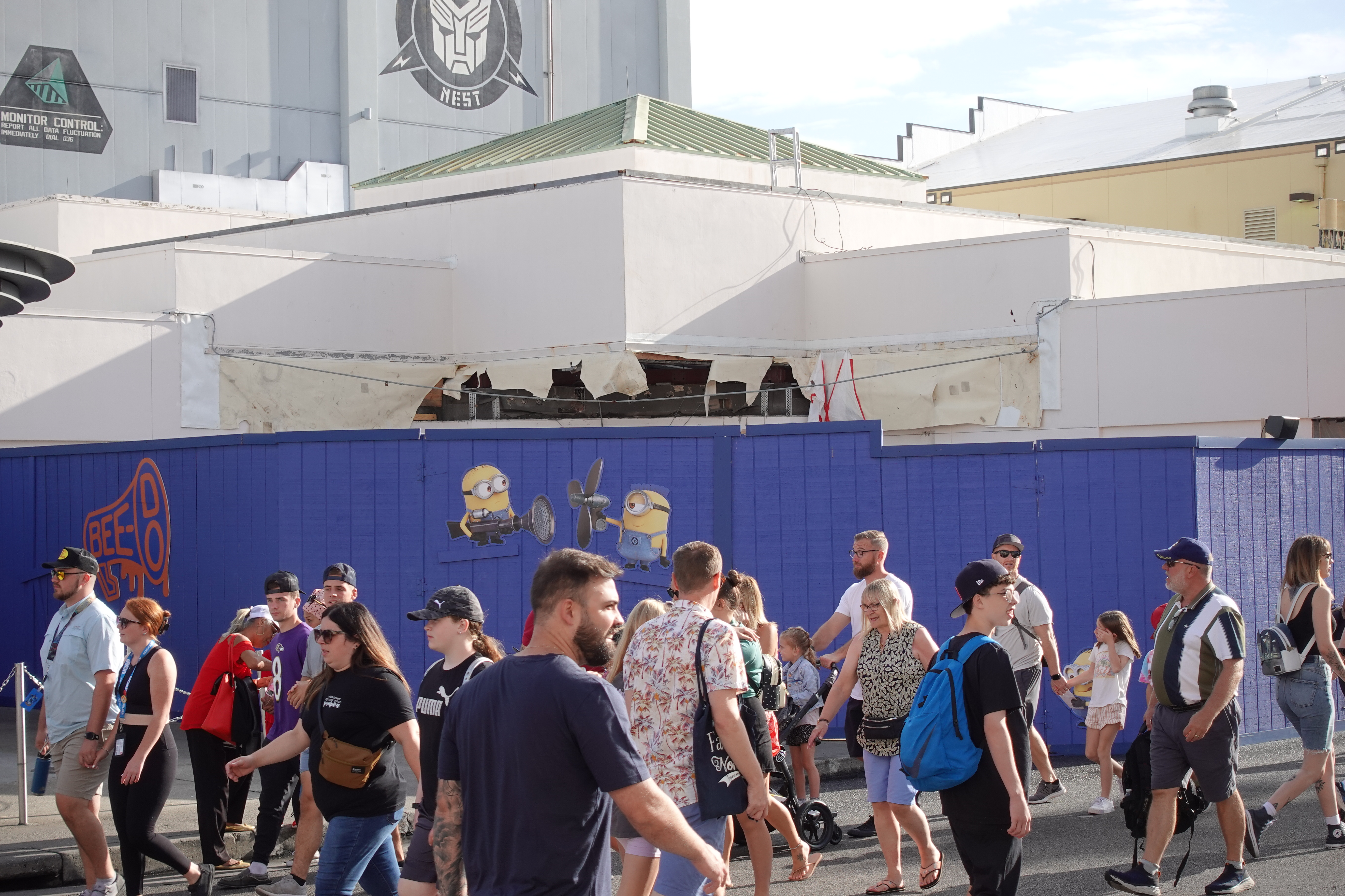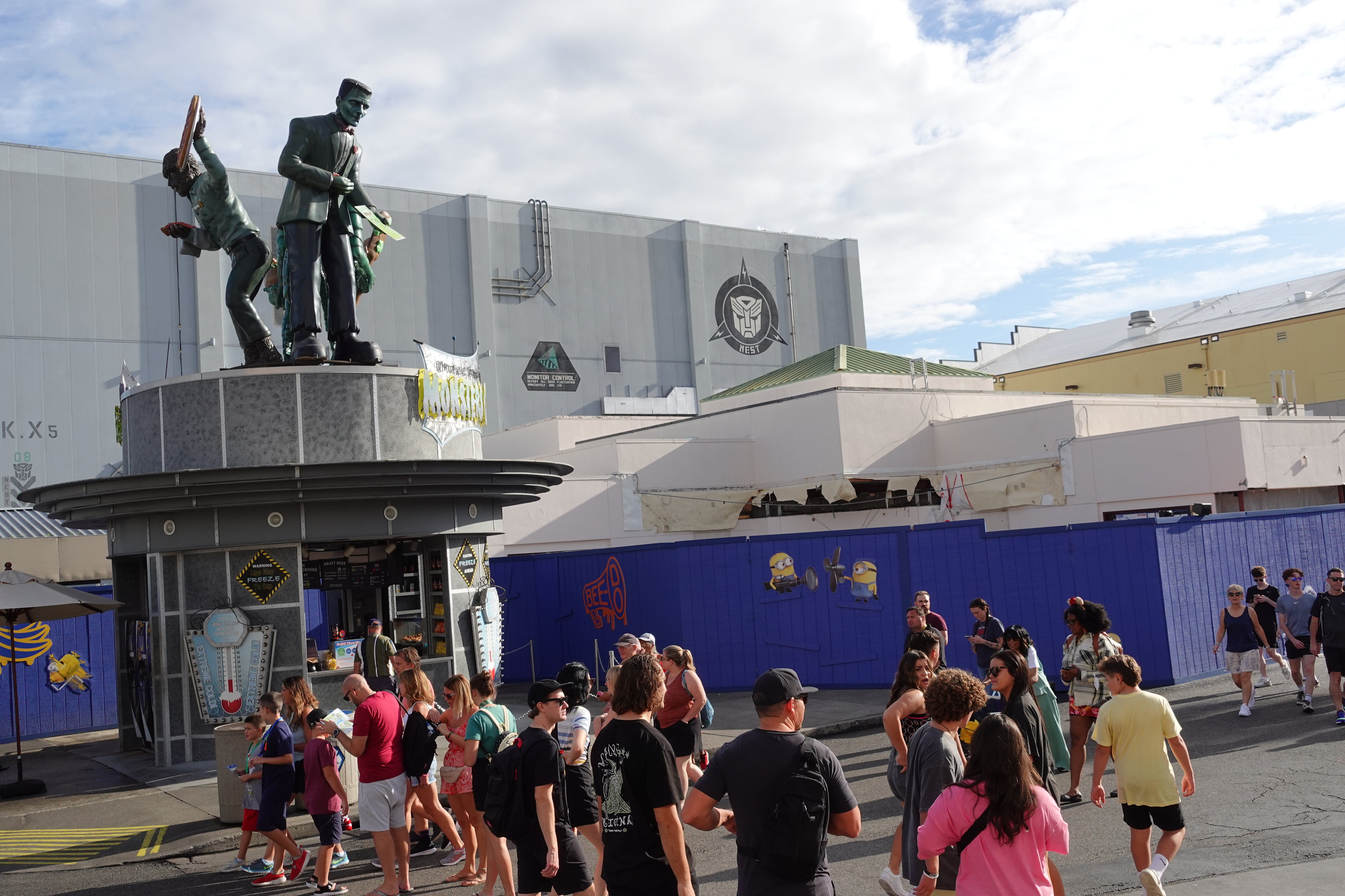 Work continues on the closed Universal Studios Classic Monsters Cafe. The iconic cafe’s entrance signage has been completely removed. A minions cafe is rumoured to replace it.