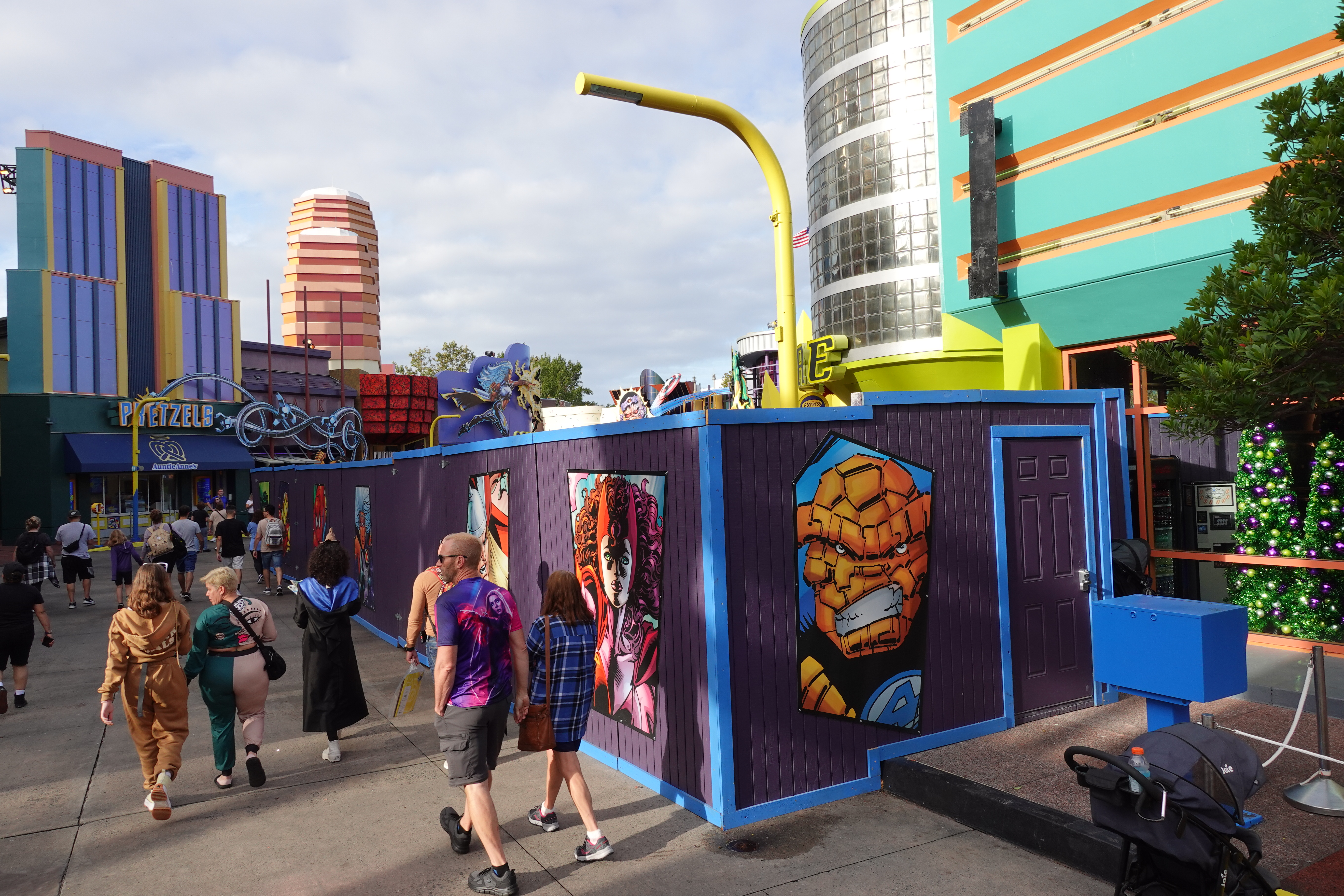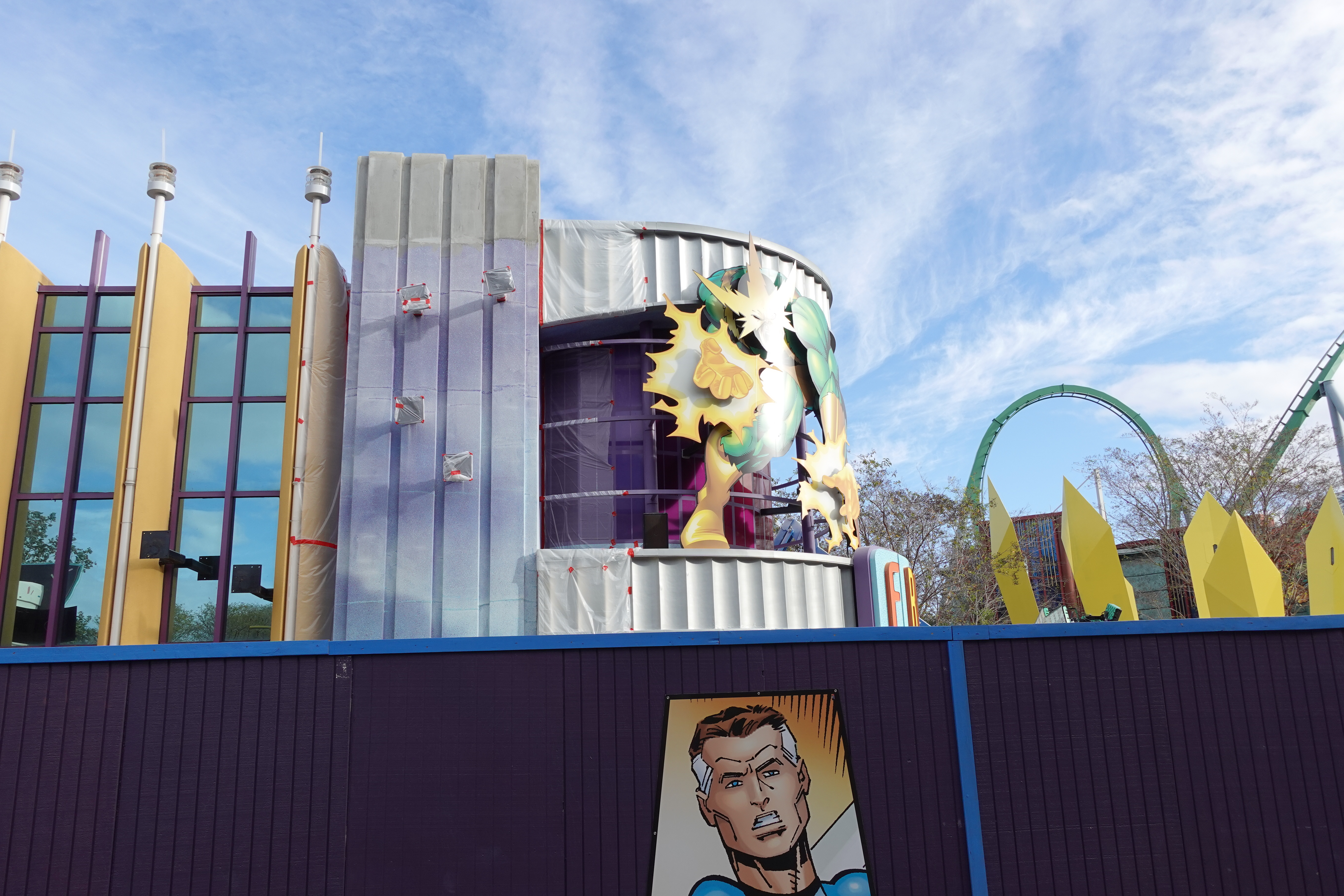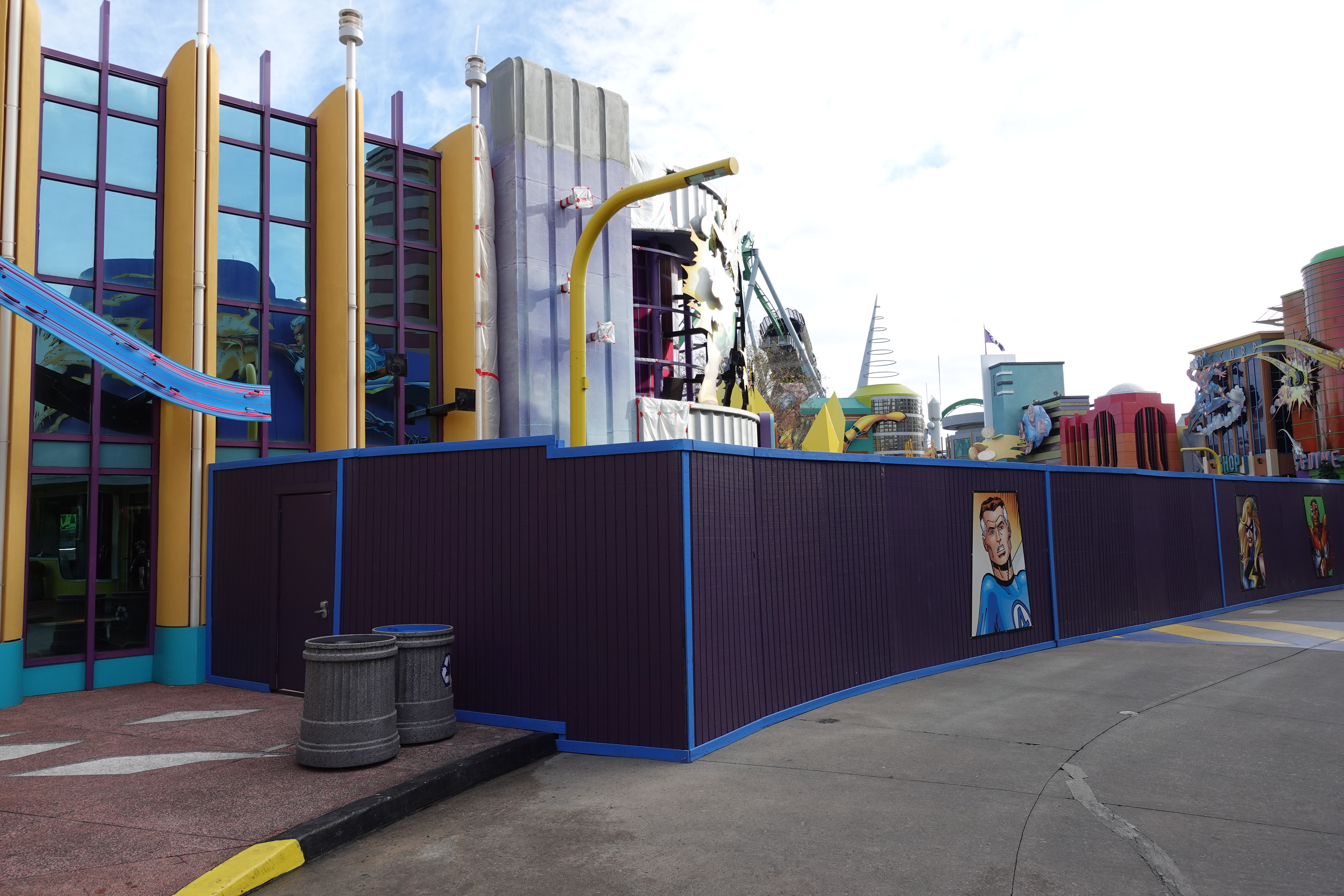 The extensive refurbishment of Marvel Super Hero Island continues. The construction walls have been up for months now.