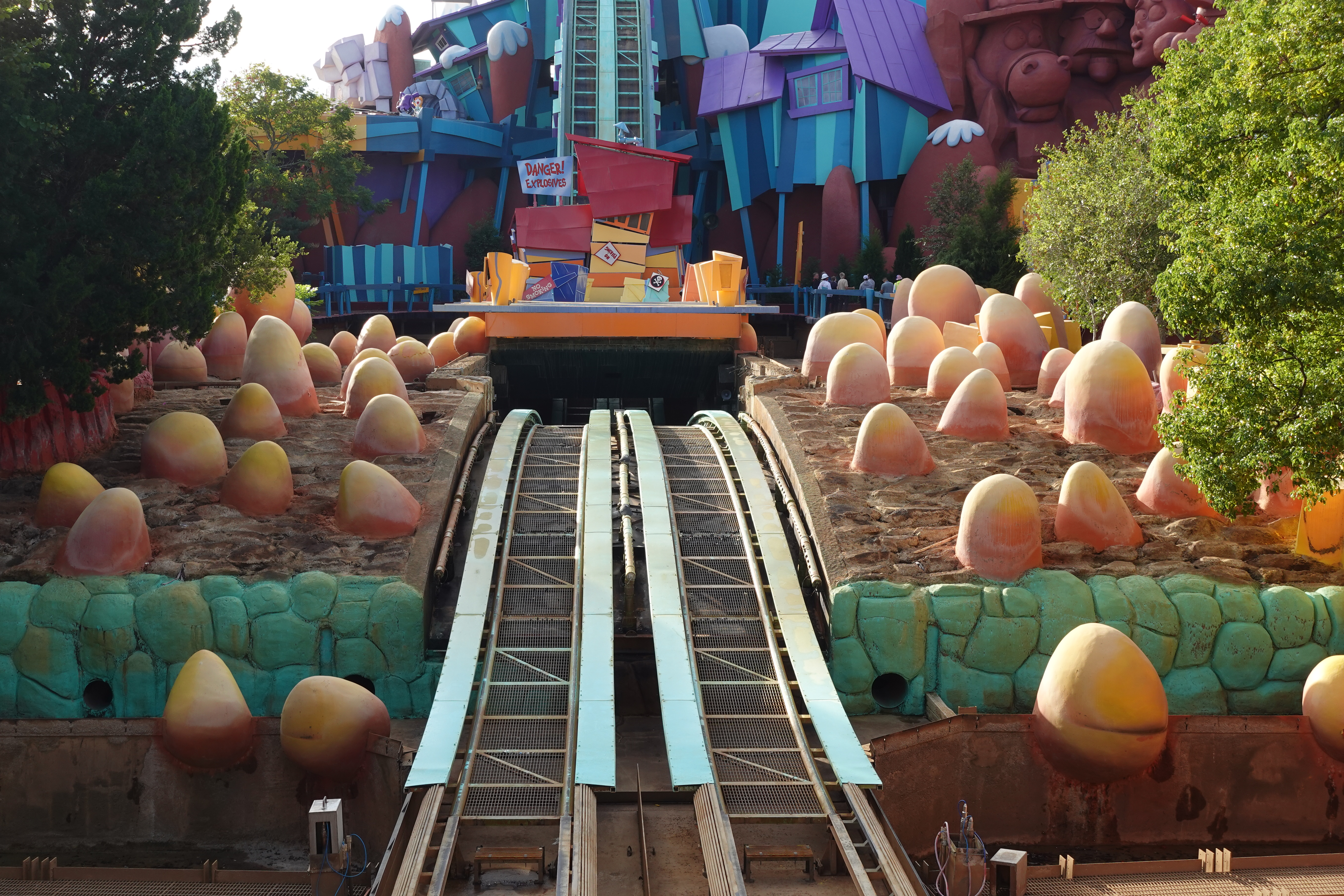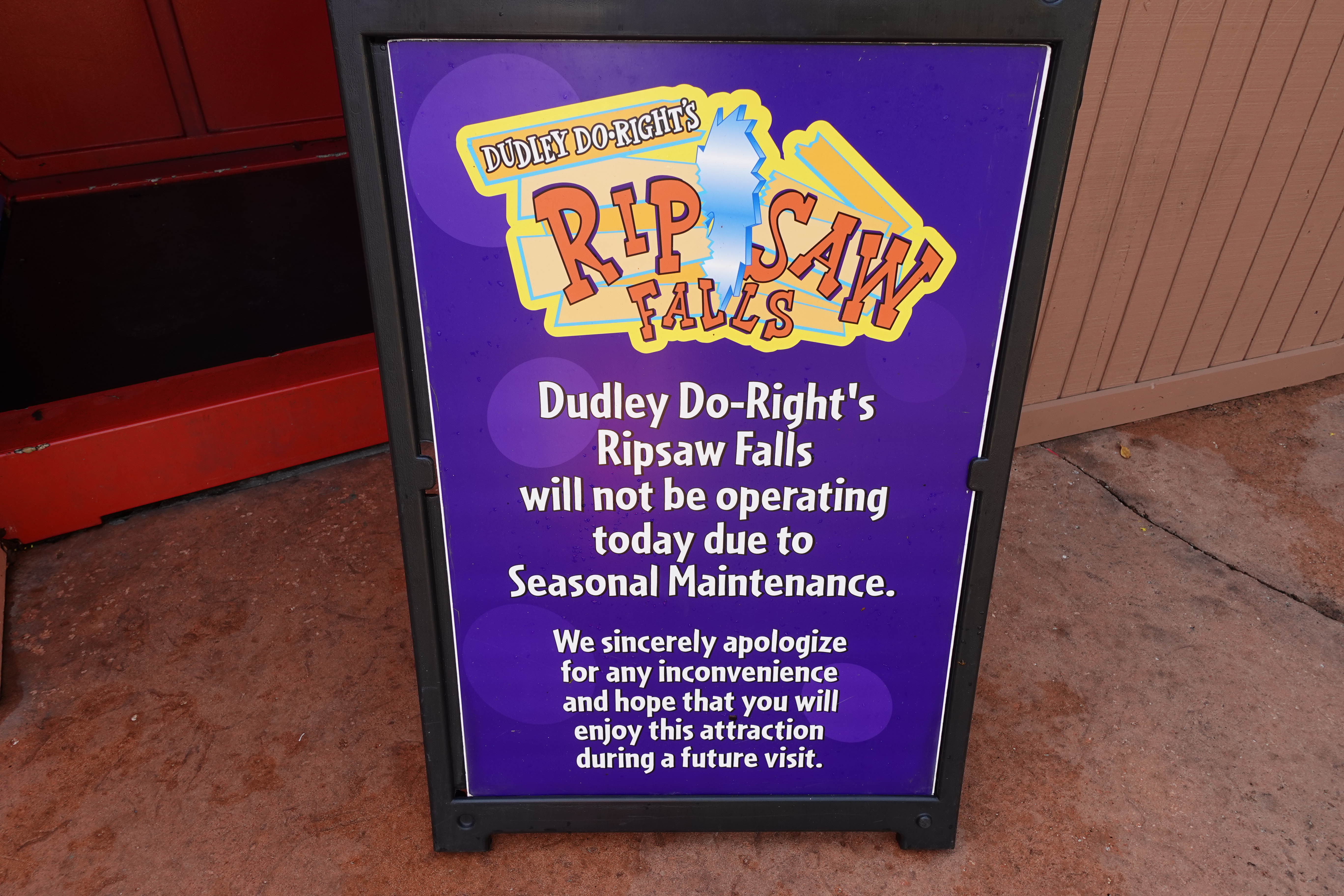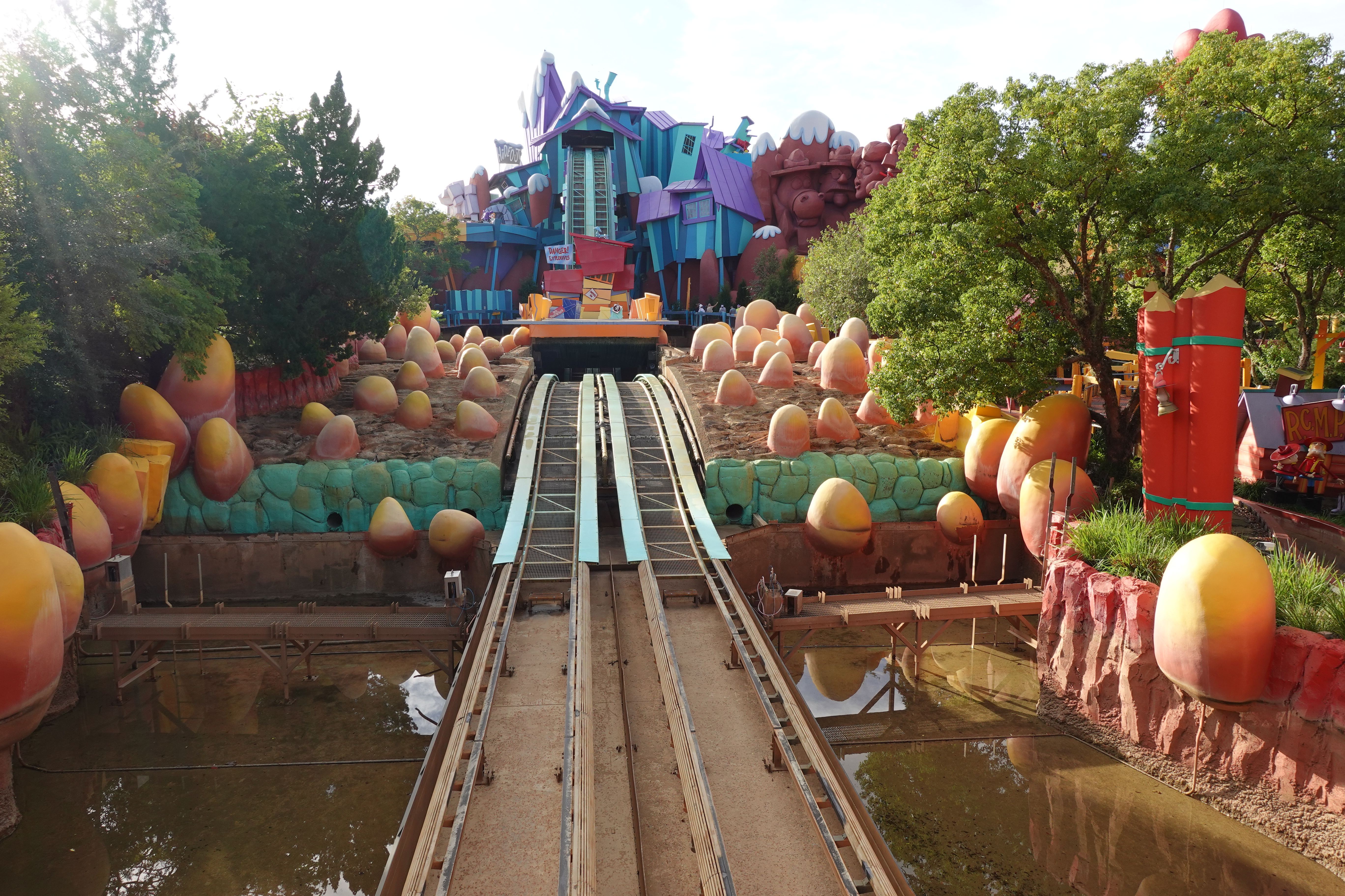 Dudley Do-Right’s Ripsaw Falls in Toon Lagoon at Islands of Adventure is currently closed for maintenance. The fan-favourite attraction has been completely drained of water.