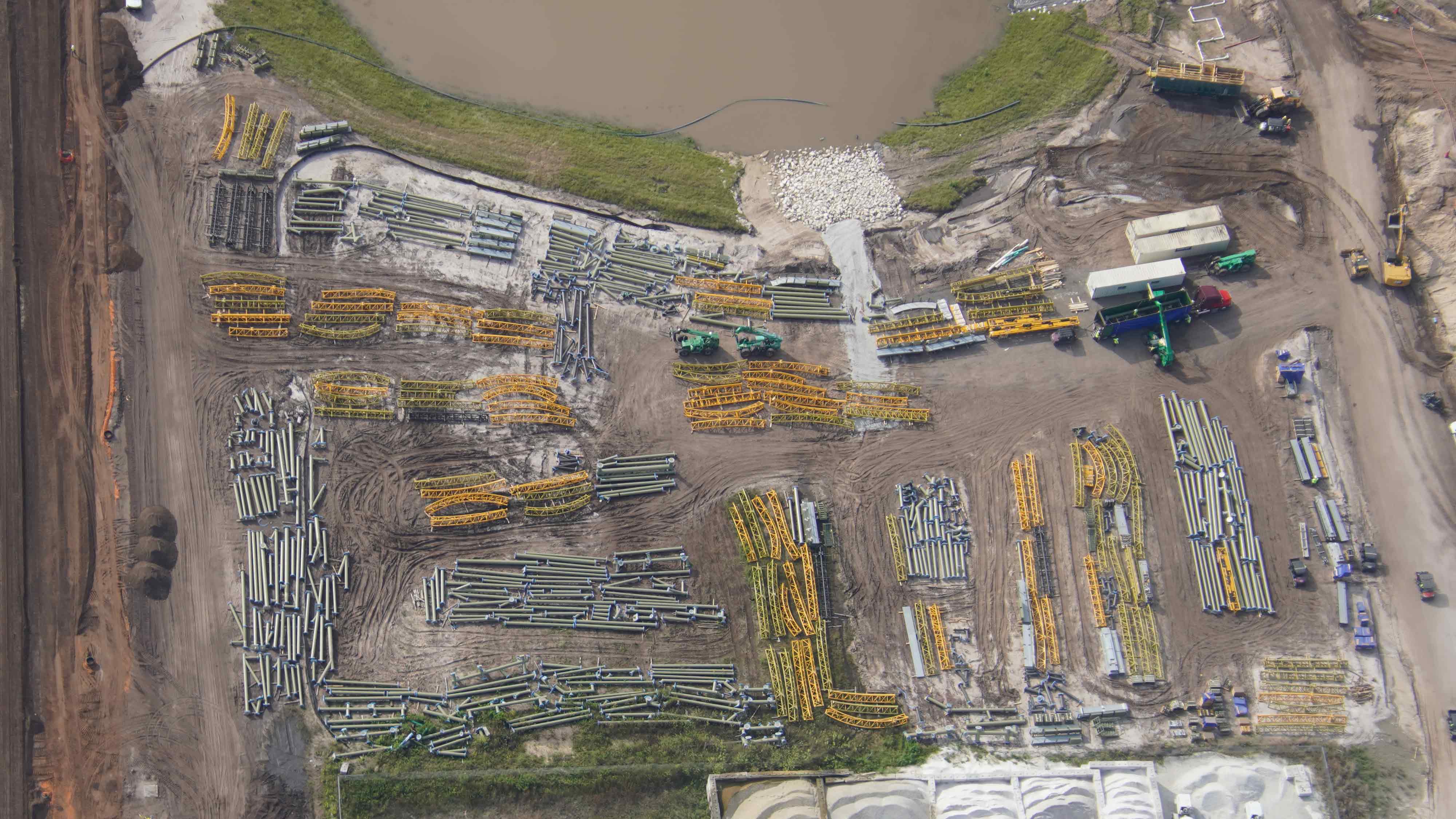 • Image #41: This aerial photo shows more track and supports staged for the high-speed dual-racing roller coaster at Epic Universe.