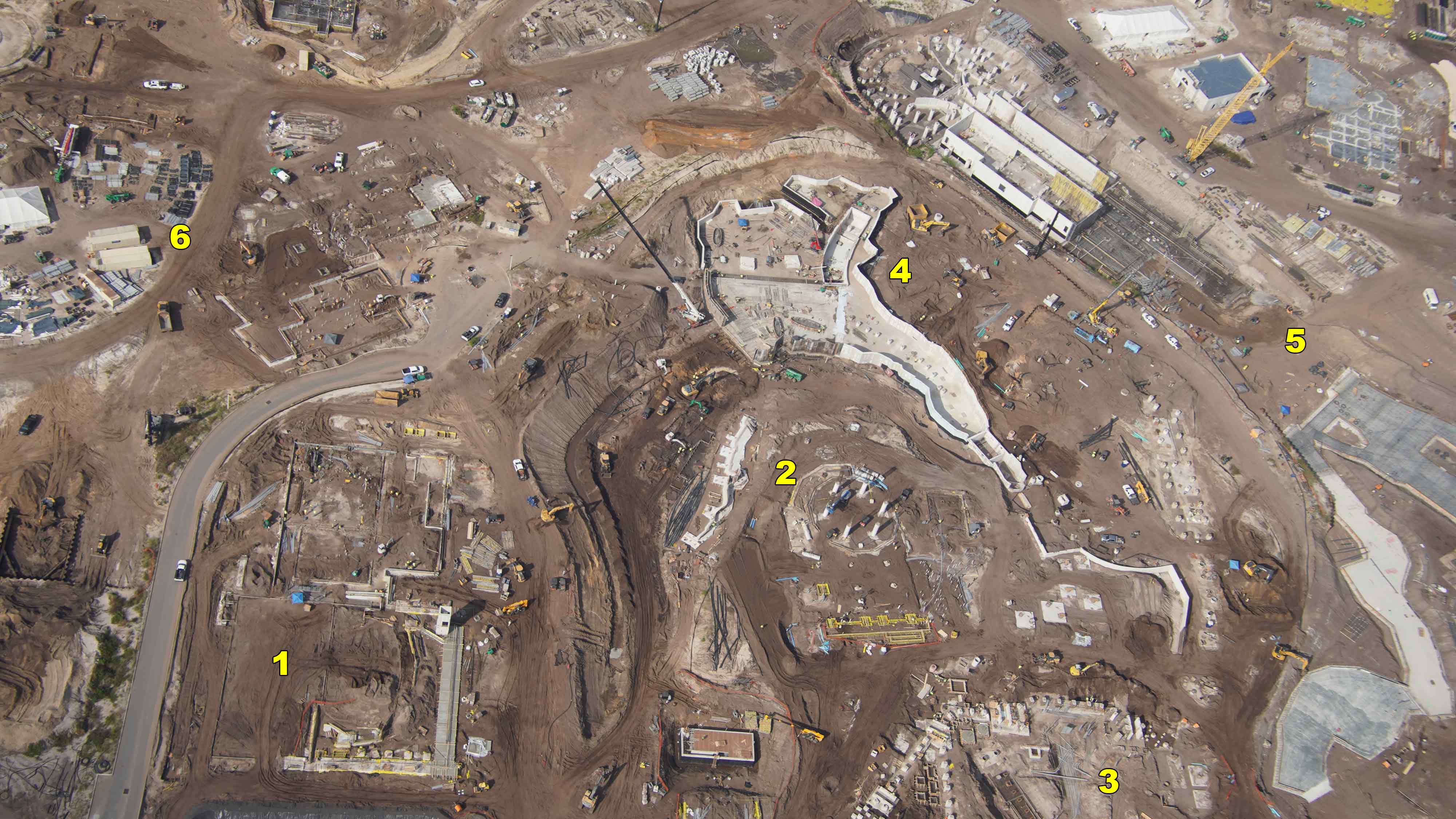 • Image #39 & #40: Aerial photos of recently-added concrete forms at the far end of the high-speed roller coaster site at Epic Universe.