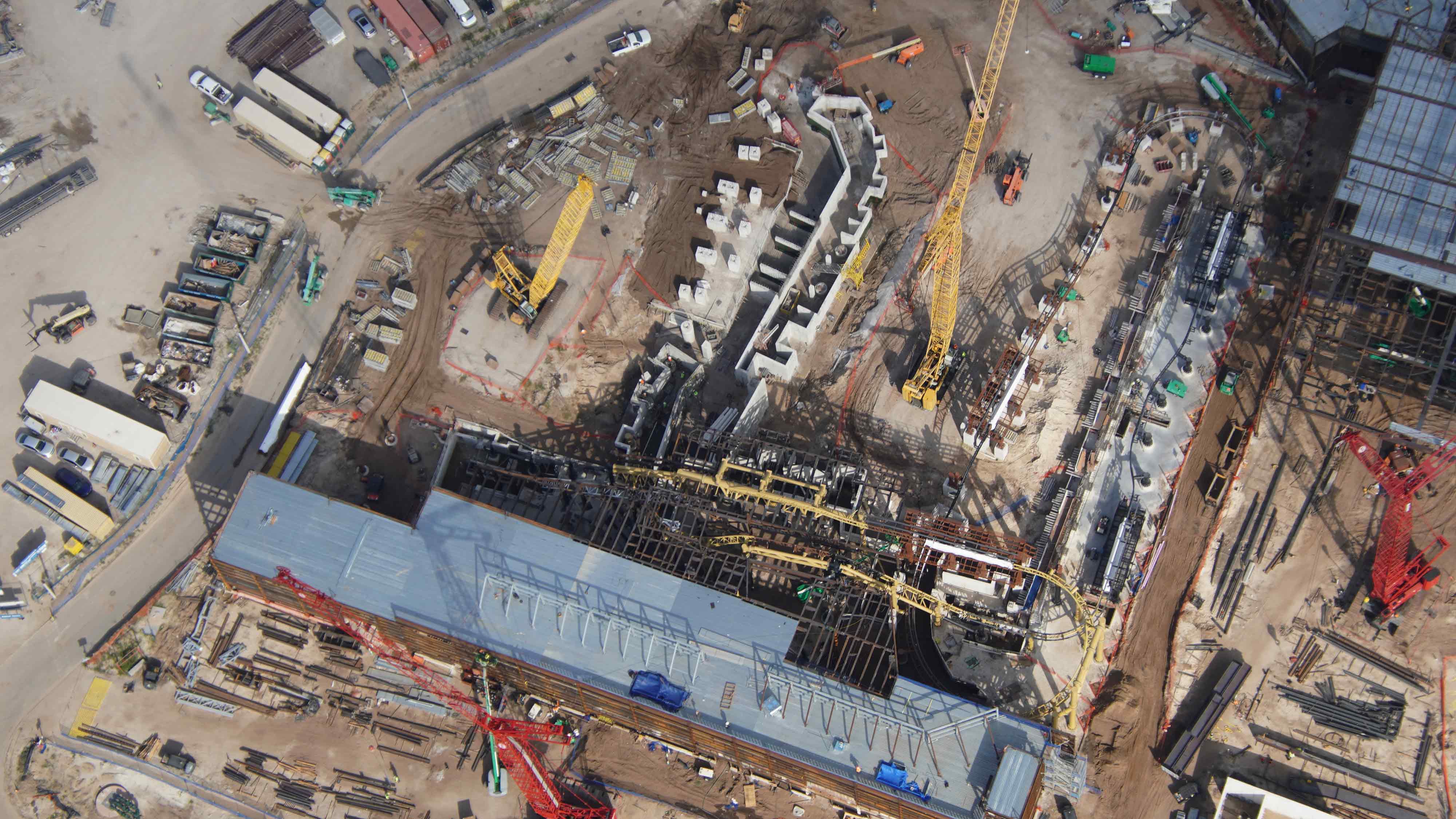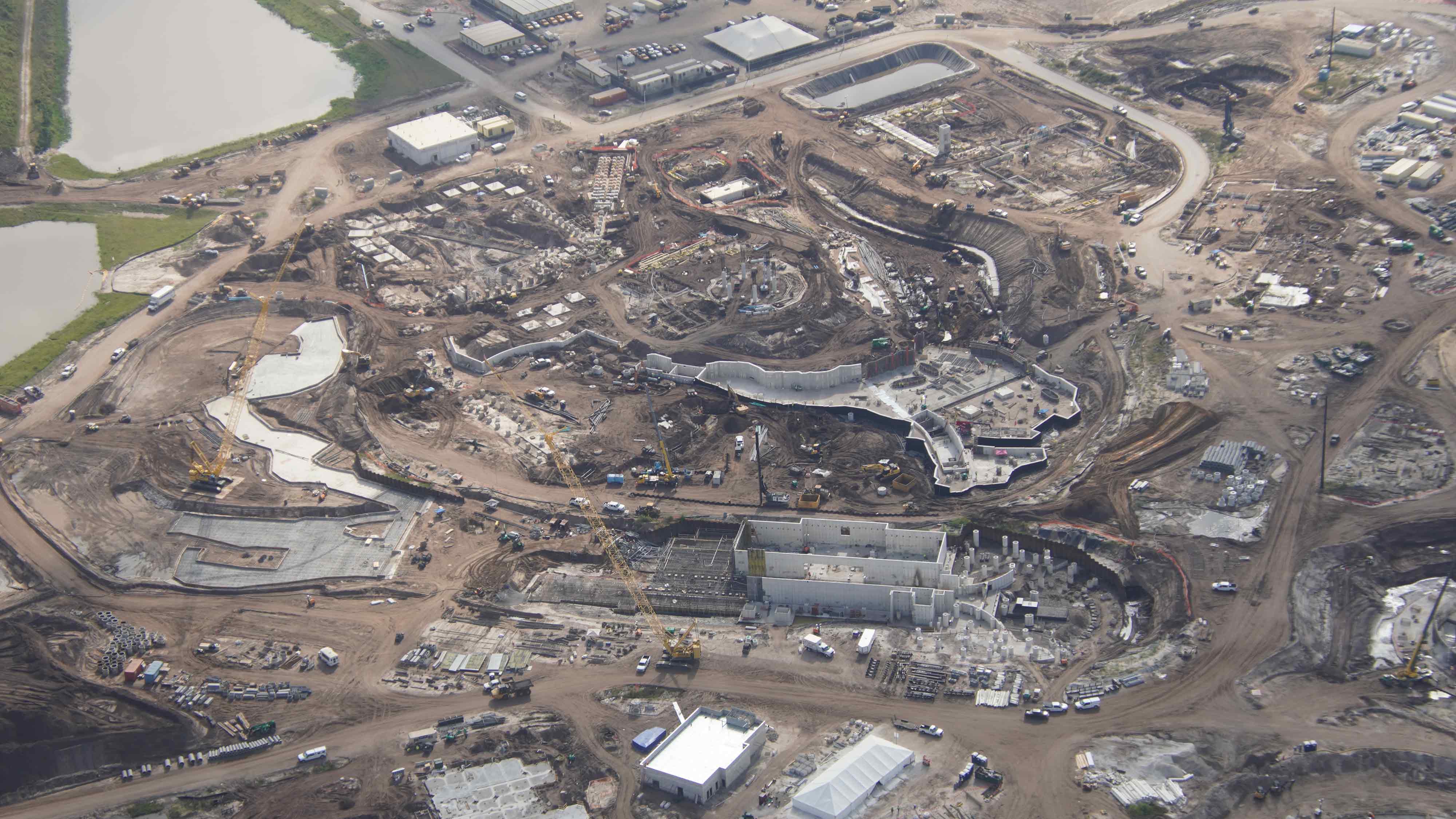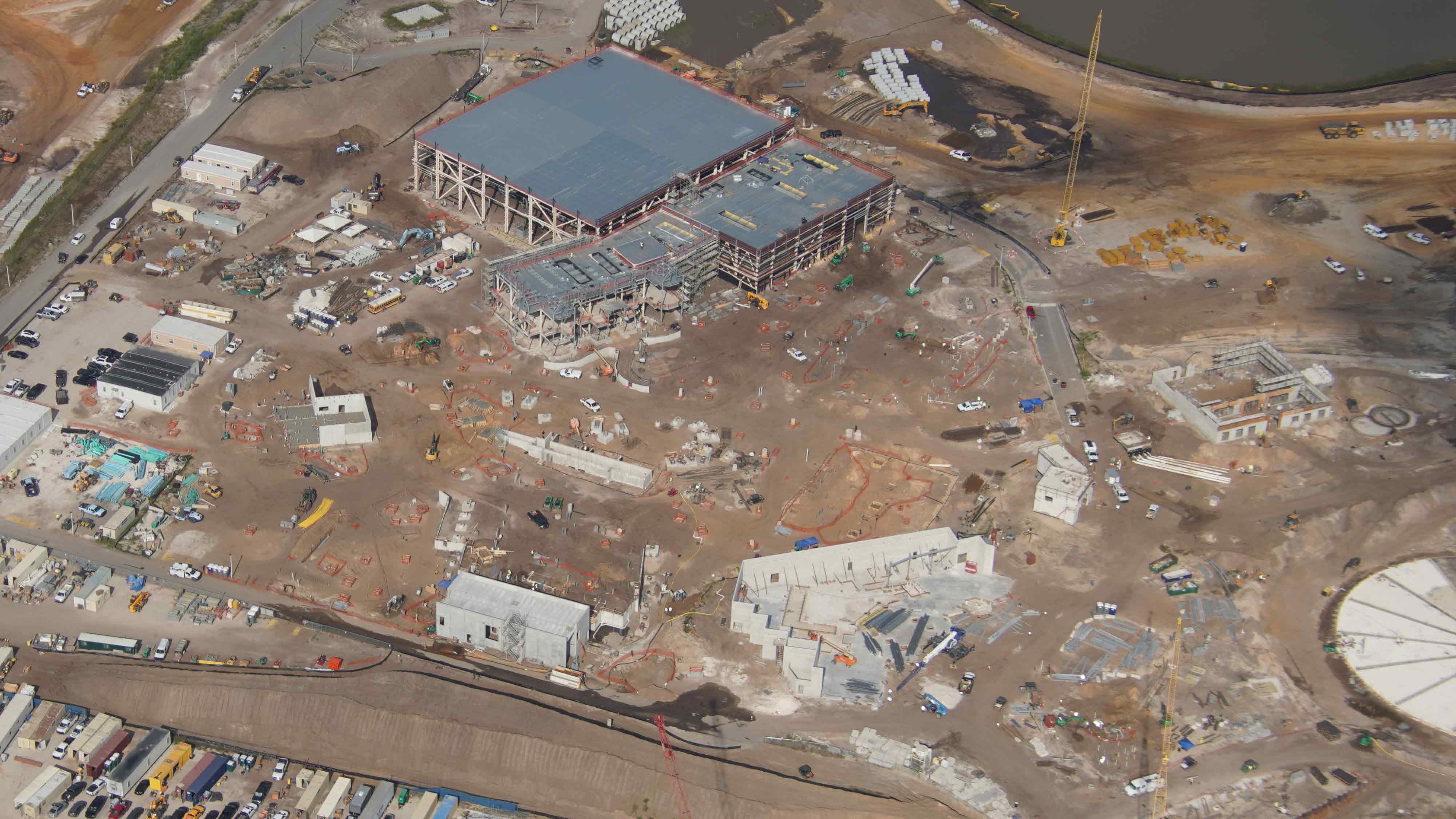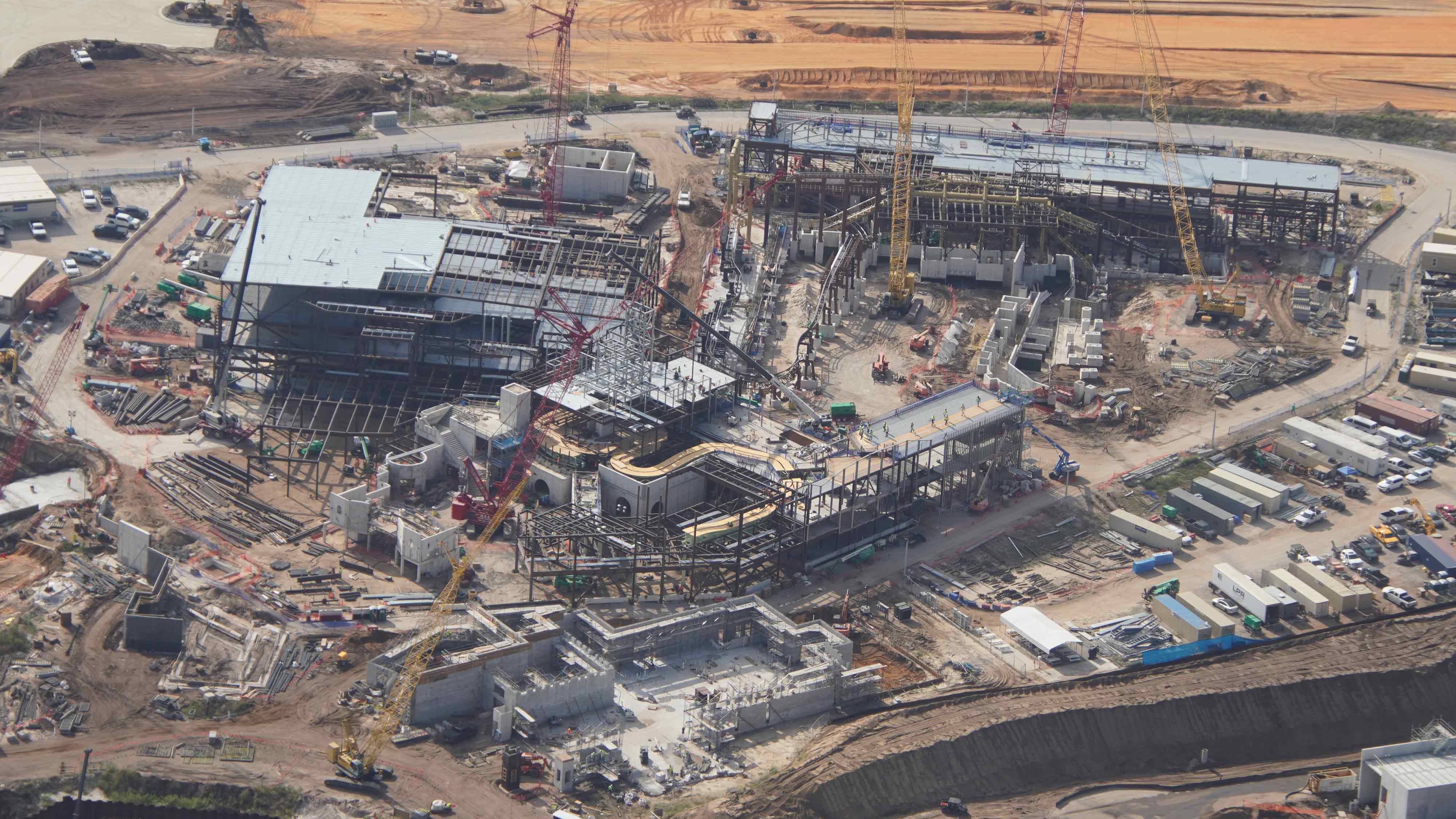 • Image #25: Aerial overview of front of Super Nintendo World. Steel frame is rapidly rising at center of this photo.