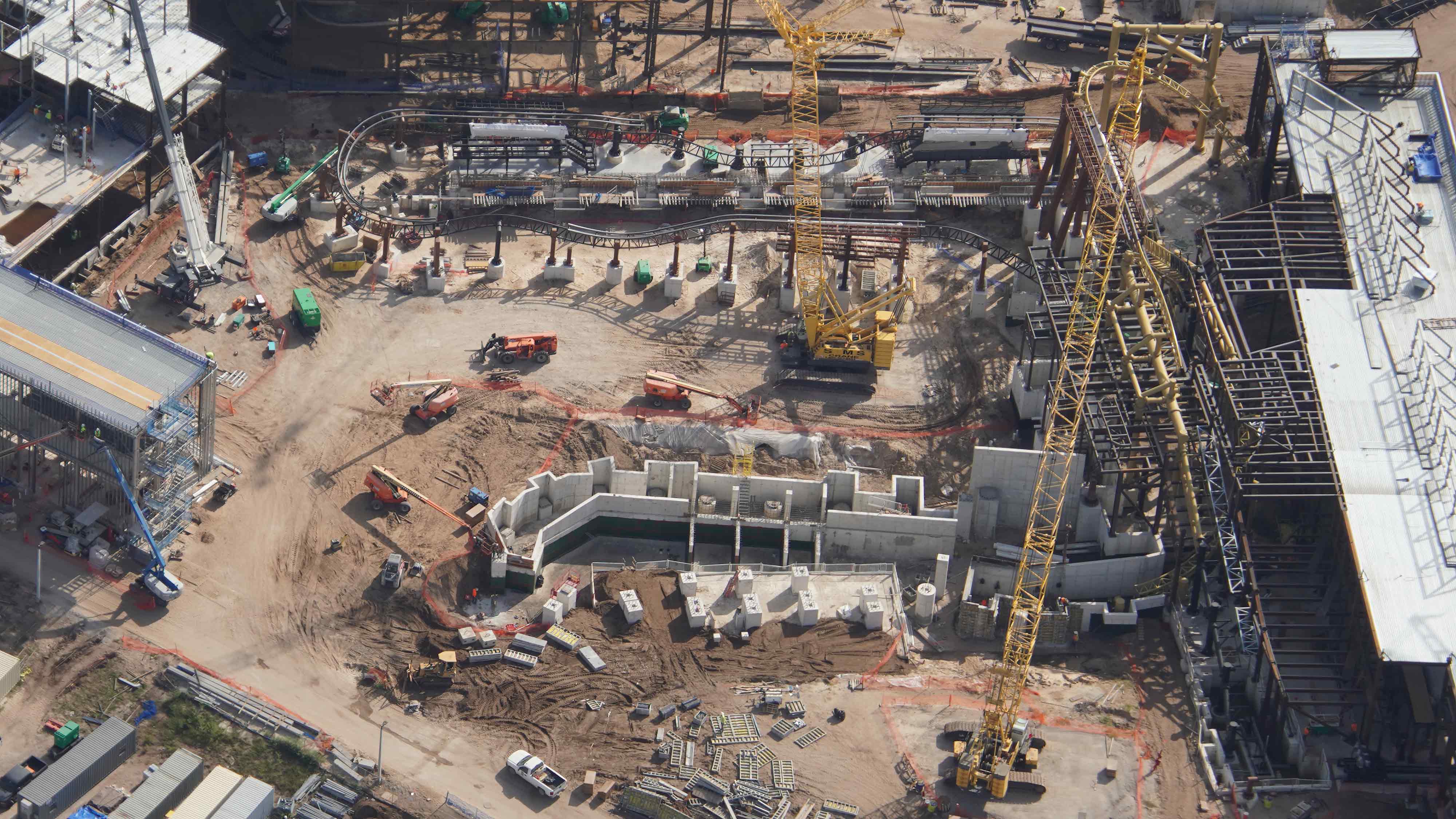 • Image #37: Aerial look at some of the concrete work for a high-speed dual-racing roller coaster in Epic Universe.