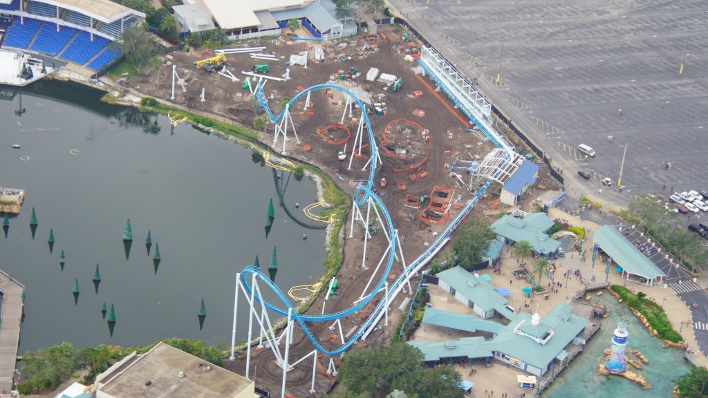- Image #6 & #7: Aerial photos of staging for next track placement of Pipeline: The Surf Coaster in SeaWorld Orlando.
