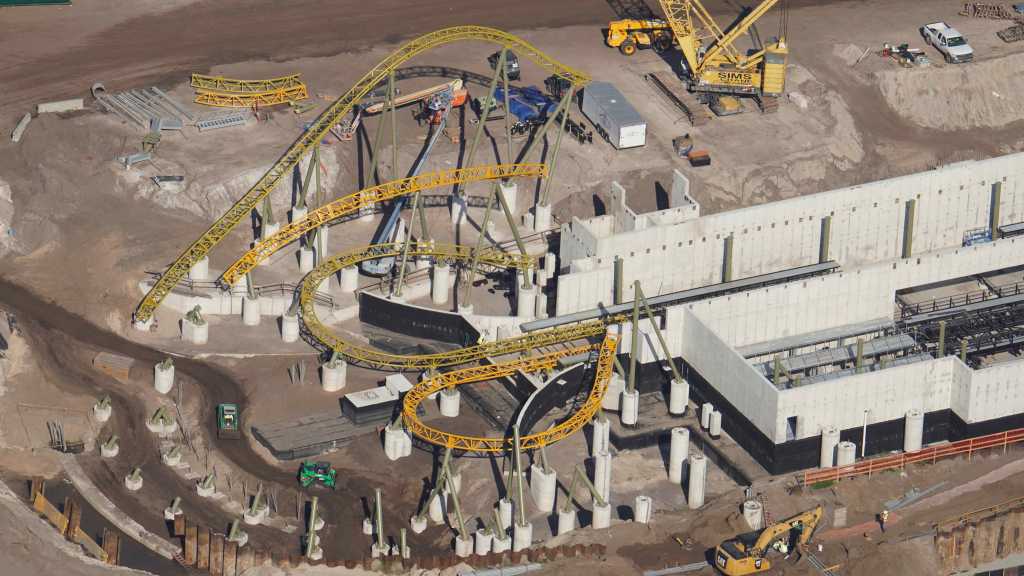 - Image #44: Aerial look at track placed so far for a high-speed dual-racing roller coaster in Universal’s Epic Universe.