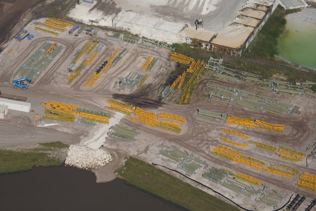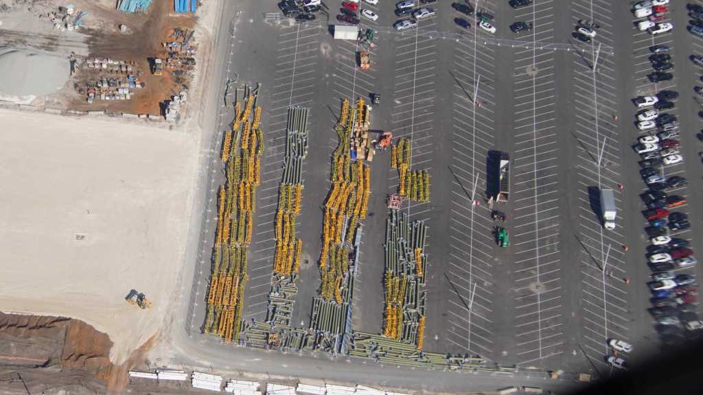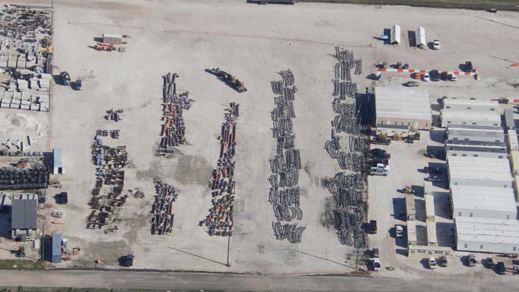 - Image #41: Aerial look at staging of track for the dual-racking roller coaster in Epic Universe. Located East of the coaster site.